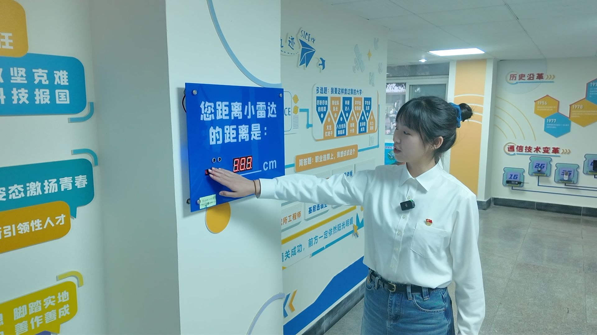 接着,杨涔可向同学们依次介绍了文化长廊的各个板块,包括“雷达种类知多少”、“创意投影灯”、“通信技术变革”等。
