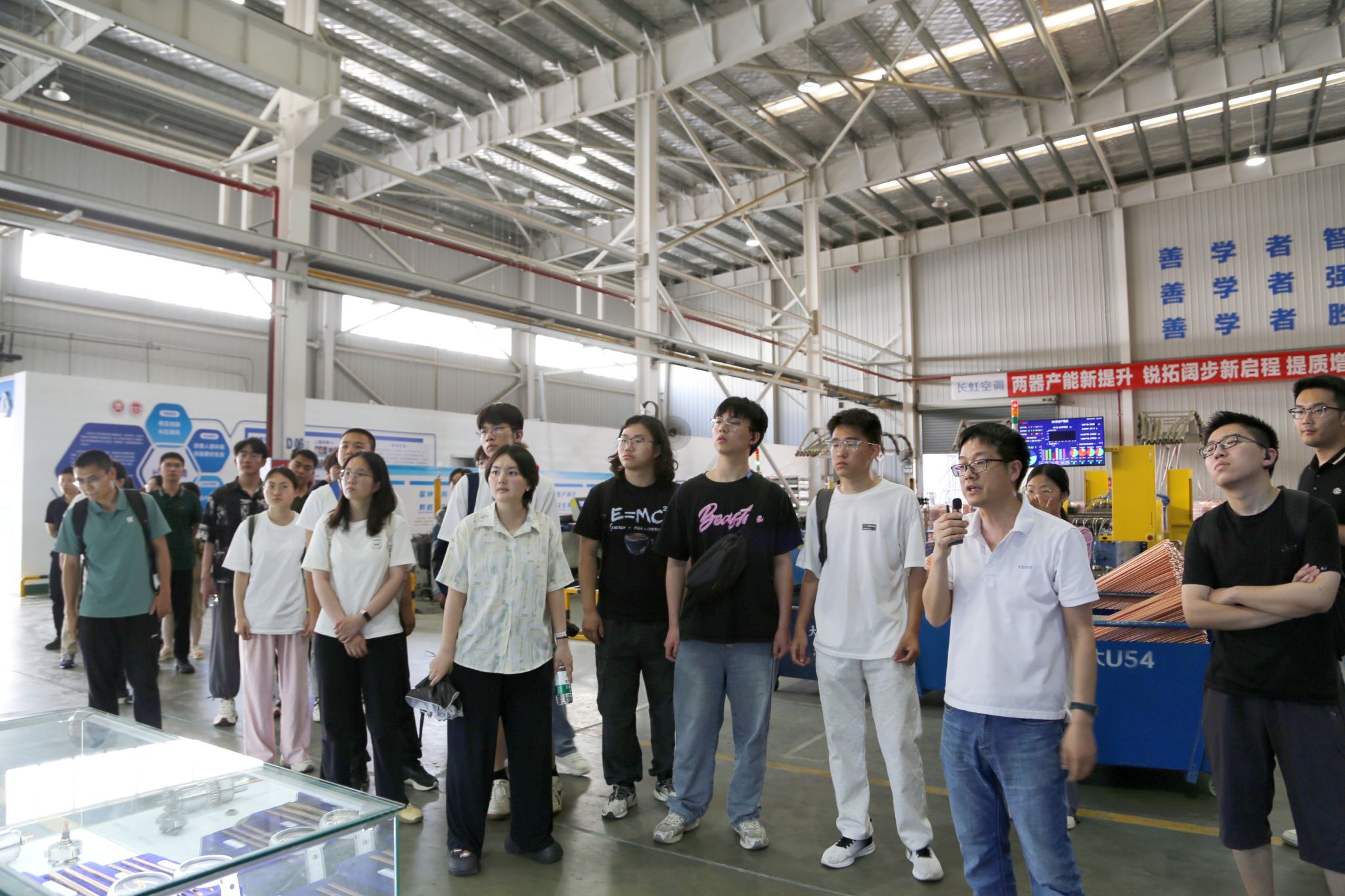 活动当天下午,同学们走进空调公司和智慧显示公司,参观产品和工厂展厅及生产线。在讲解员的带领下,同学们近距离感受了工艺制造环节的运作流程和现代制造业的发展趋势和技术应用,了解了企业的技术研发方向、生产管理流程以及行业发展趋势,帮助同学们将理论知识与工程应用相结合,增强专业认知,拓宽专业视野。