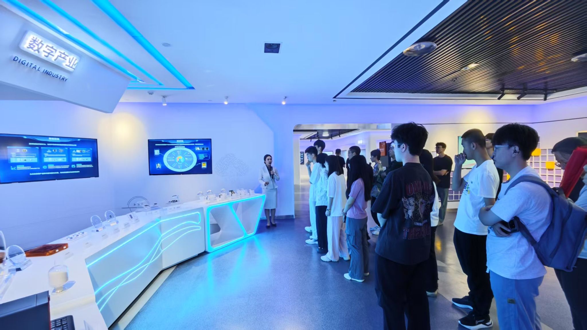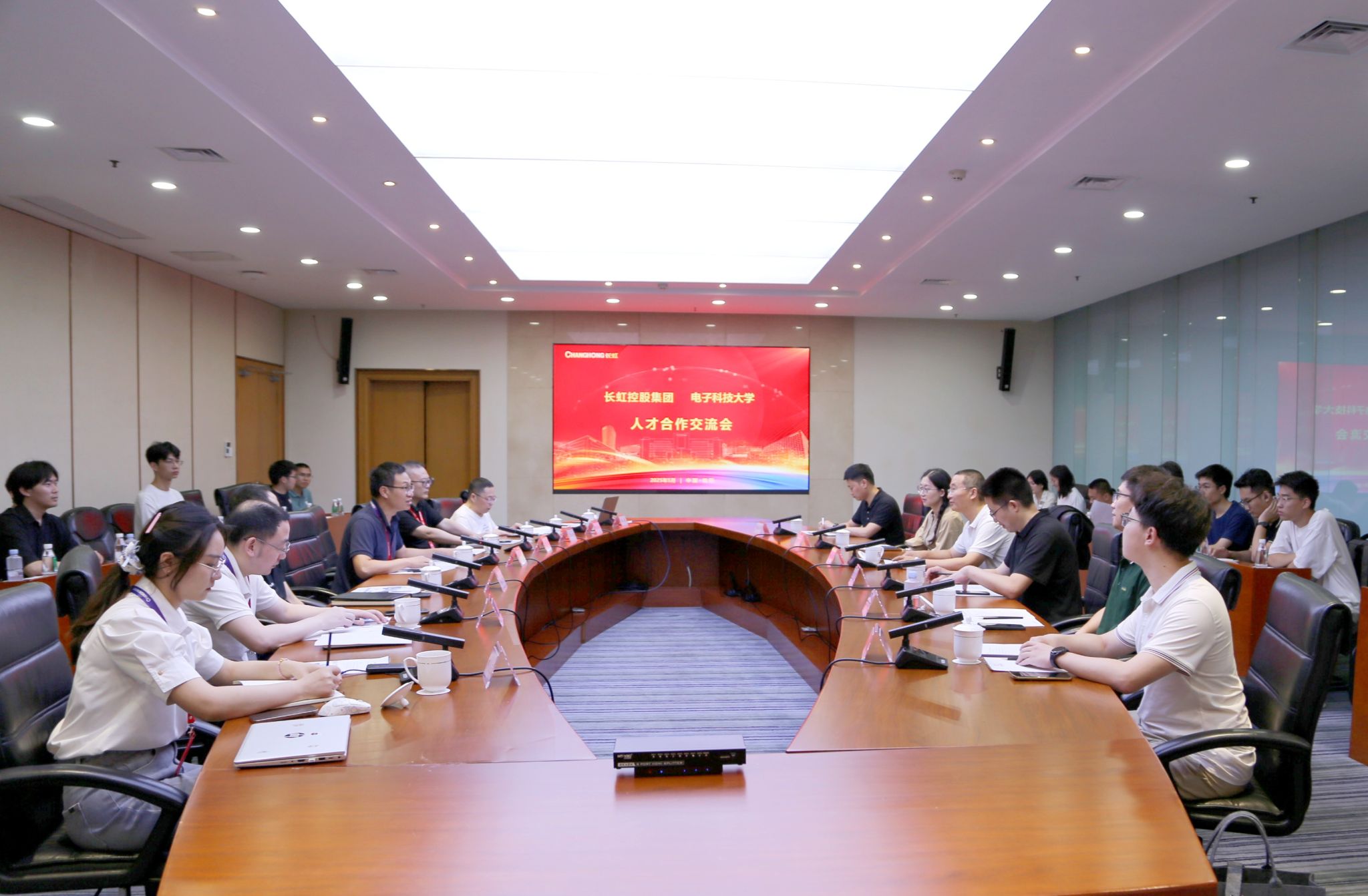 活动当天上午,同学们首先参观了长虹公司展厅。在讲解员的带领下,师生们详细了解了企业发展历程、核心技术、产品体系及行业成就。随后,在座谈会上,双方围绕人才需求和就业情况等议题进行了深入交流。企业代表介绍了公司不同岗位的人才需求特点,强调了实践能力、创新思维和团队协作精神等素质的重要性,并结合自身经验,给予了耐心细致的解答,鼓励同学们积极关注行业动态,为未来的职业发展做好充分准备。