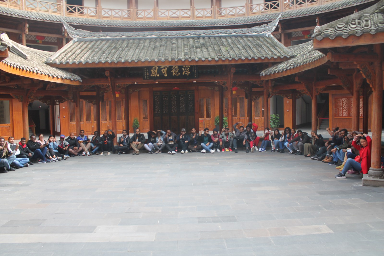 上午10点,职工们集合前往洛带古镇。作为成都平原最大的客家人聚集地,洛带古镇有着丰富的客家文化。到达目的地后,大家一同参观洛带古镇内的各种房屋建筑,其中这样一种极具地域色彩的建筑形式,一座承载着大鱼海棠之梦的土楼给职工们留下了非常深刻的印象。