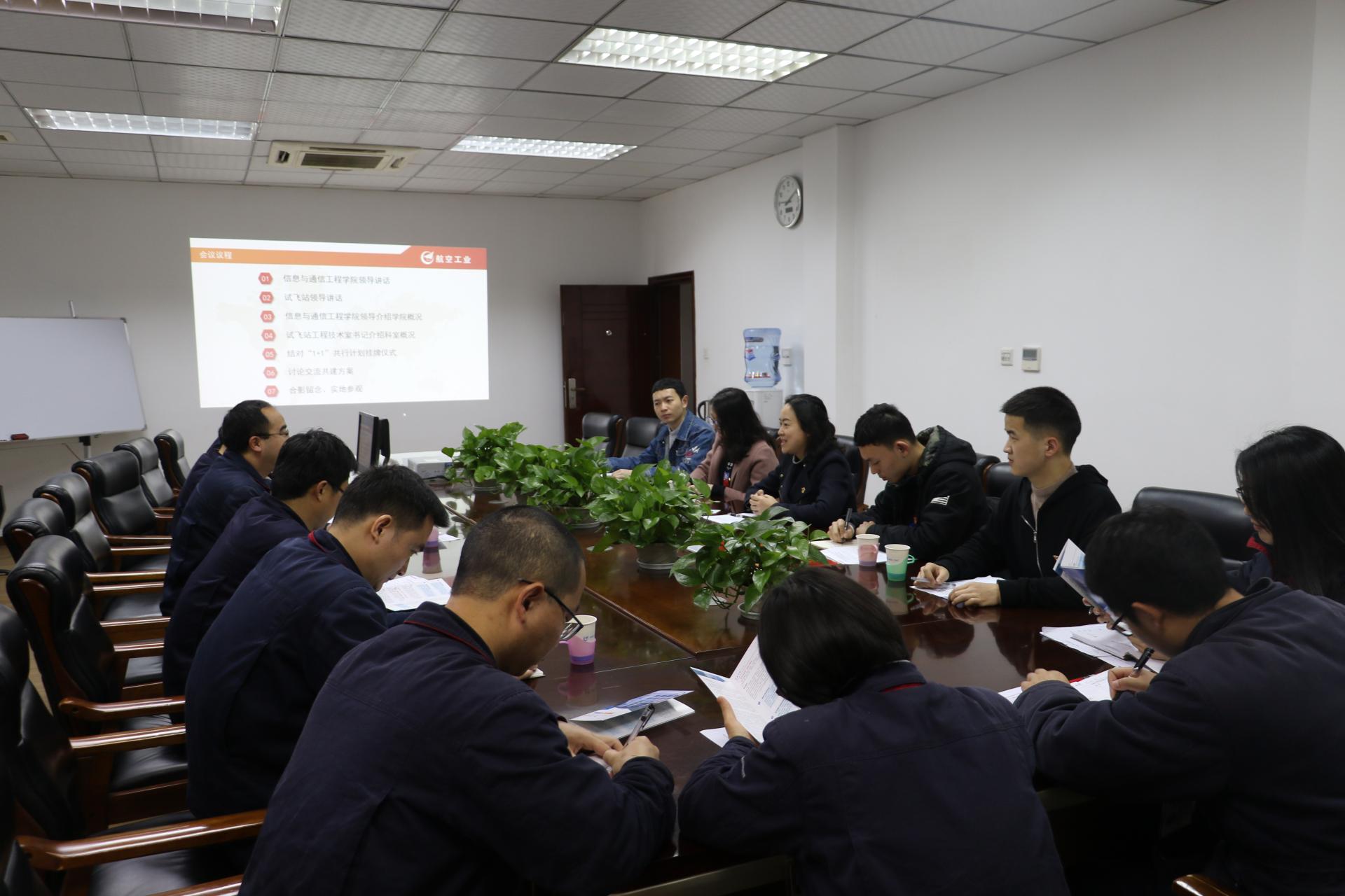 为响应公司党委关于开展校内外党支部“1+1”共行计划的号召,进一步对员工党员的政治思想意识进行塑造和培养,同时实现基层党支部与员工党支部之间优势互补,共同进步。近日,信息与通信工程公司党委副书记杨晓玲带领公司师生代表,前往成都飞机工业(集团)有限责任公司,开展了伟德国际victor1946本科第四党支部、国防生党支部同成飞公司试飞站委员会工程技术室党支部“1+1”结对共建挂牌活动。参加此次活动的有成飞公司试飞站党委书记朱正宏,试飞站副站长但锟,试飞站工程技术室党支部书记王智以及工程技术室党支部核心党员骨干等。