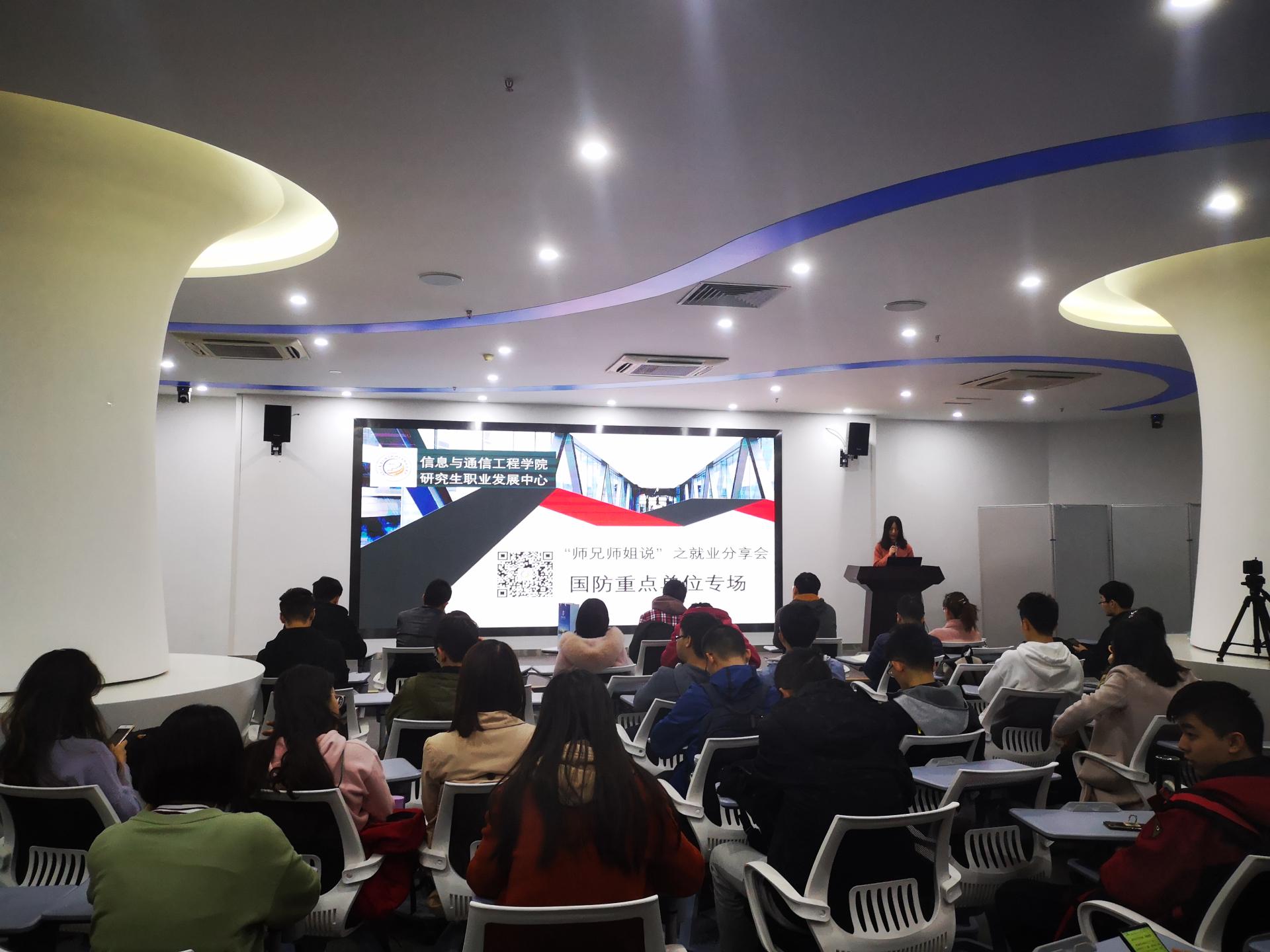 3月22日晚,伟德国际victor1946研究生职业发展中心与研究生会在图书馆二楼百学堂成功举办“师兄师姐说”之就业故事分享会—国防重点专场,以响应国家和公司鼓励研究生前往国家重点单位就业的政策,引导公司研究生“投身主流、服务基层、建设家乡”。此次分享会特邀签约中国电子科技集团第十四研究所的吴阳师兄,中国电子科技集团公司第五十四研究所的焦海超师兄,中国船舶重工集团公司第七一五研究所的陈芳香师姐,中电科技集团重庆声光电有限公司的胡波师兄,西安空间无线电技术研究所的王泽锟师兄,成都飞机工业有限责任公司的李嘉辛师兄为同学们带来国防重点单位的求职经验分享。本次活动由来自研究生职业发展中心的李通强主持。