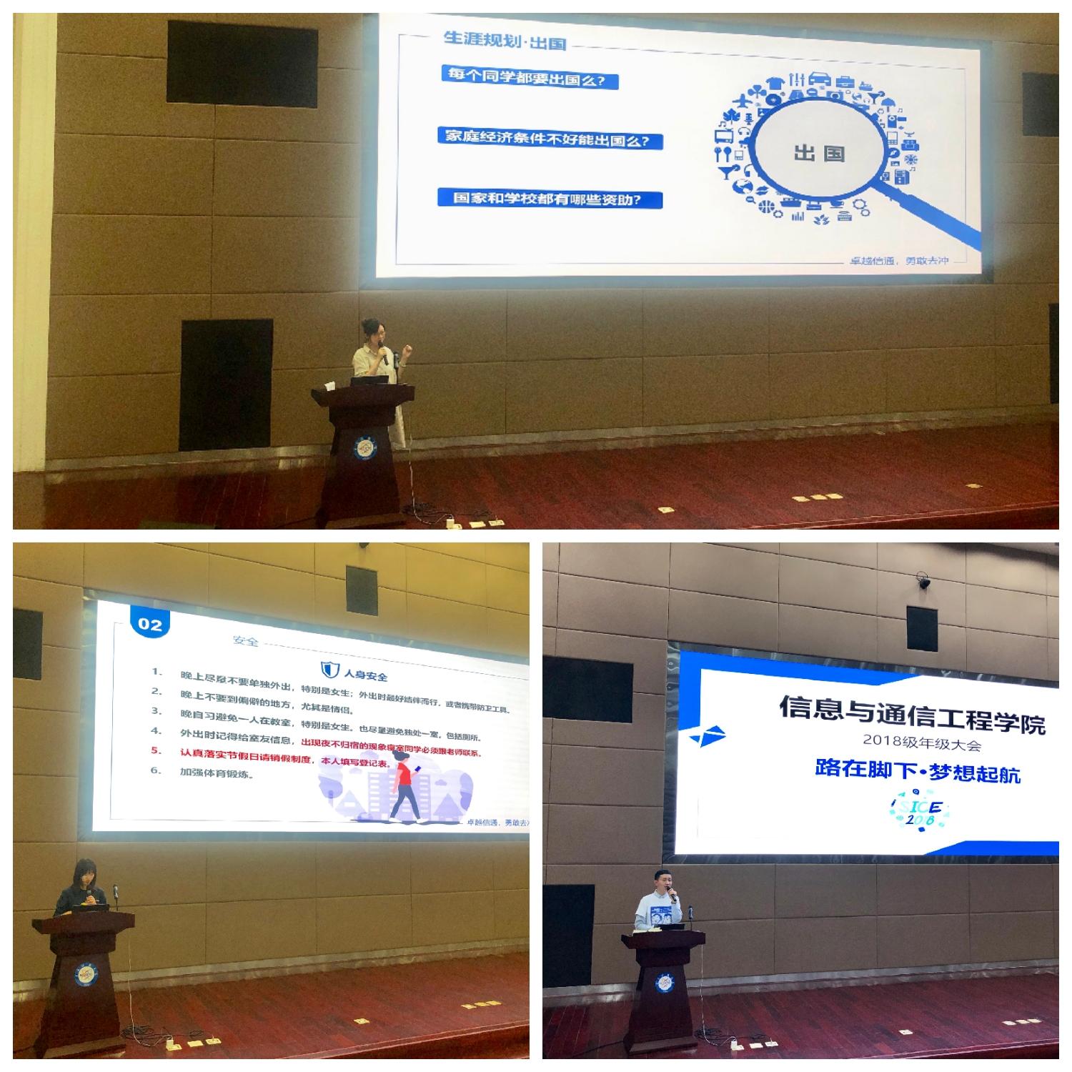 4月16日,信通与通信工程公司本科2018级召开职业生涯规划大会,本次大会以“路在脚下,梦想起航”为主题。鼓励大一年级同学明确目标,脚踏实地,为梦想绽放打好坚实基础。公司党委副书记杨晓玲参加会议,会议由辅导员王书巍主持。