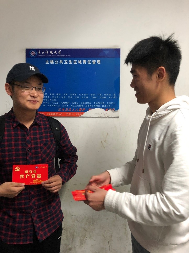 活动中,各个员工党支部书记来到教研室,在每一位党员的工位上张贴“研究生共产党员”标识。接过“研究生共产党员”牌子,党员同志们感到非常高兴和自豪。纷纷表示,今后一定更加严格要求自己,不断提高自身政治素养,牢记党员身份,踏实进取、认真谨慎,忠于职守,遵纪守法、廉洁自律,努力发挥党员的先锋模范作用,树立大局意识、服务意识、使命意识,努力做到全心全意为人民服务的宗旨。