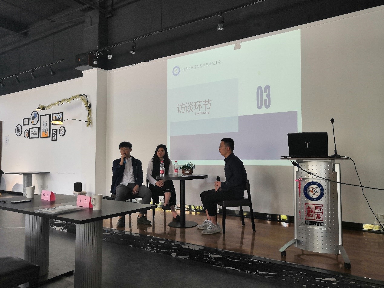 在访谈环节,邓雷升老师就态势感知等前沿热门方向,对同学们提出了具体的展望,希望同学们以致力于国家的繁荣富强为己任;魏兰老师则描述了博士员工的培养与发展方向,说明了博士继续科研的途径,并回答了博士是否能自主选题等细节问题。