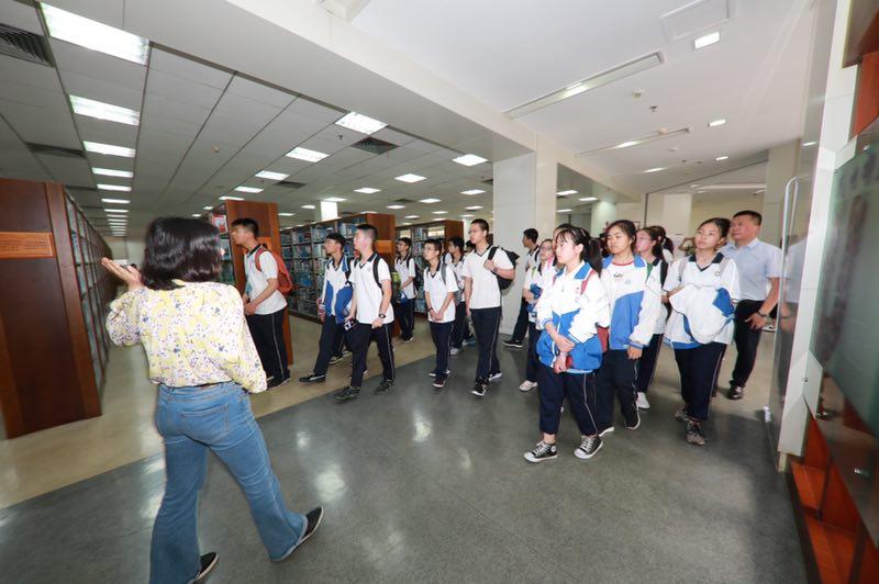 随后,简阳中学师生们来到电子科技大学图书馆,在图书馆工作人员的带领下详细了解图书馆的情况,员工们置身于数百万册藏书中,接受着知识的熏陶,在图书馆老师的带领下体验自动人脸识别系统、VR体验实验室等种种“黑科技”,引来员工阵阵赞叹。