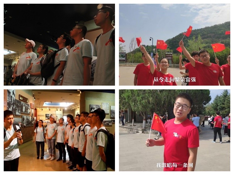 “我和我的祖国,一刻也不能分割,无论我走到哪里,都流出一首赞歌”,在宝塔山,在延安革命纪念馆,身着“青年红色筑梦之旅”实践队服的同学们情不自禁哼唱出了《我和我的祖国》《歌唱祖国》《游击队之歌》等红色歌曲,致敬革命先辈,向伟大祖国70周年华诞献礼。同学们激昂的歌声吸引了部分共同前来学习的人们,不少人忍不住与队员一起唱了起来,洪亮的歌声汇聚起了每一位中华儿女对祖国深沉的爱。
