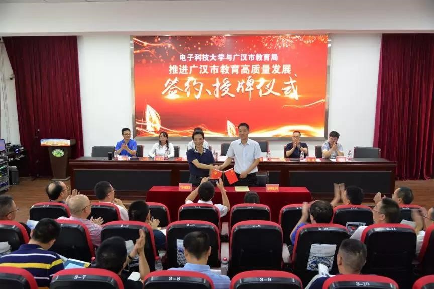 8月28日,电子科技大学国际高水平联合培养项目与广汉市教育局就推进广汉市教育高质量发展举行了签约仪式。公司副经理田广和、ICT培训中心办公室主任章一滔、郭伟老师、程建教授,继续教育公司党委副书记、副经理赵守利,国际高水平联合培养项目主任卢永立,广汉市委教育工委书记、市教育局党组书记、局长肖兴琦,广汉市教育局副局长黄文健等参加仪式。
