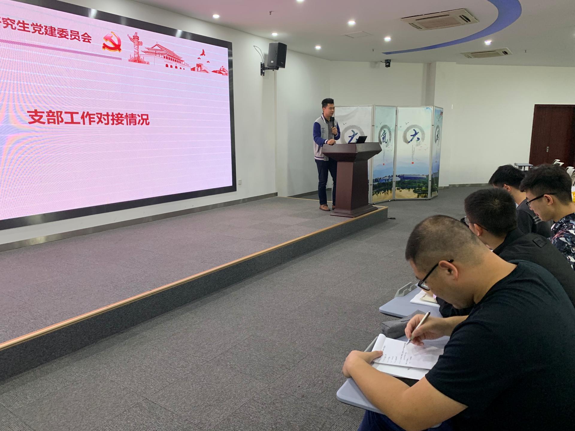 匡鹏举强调了近期各支部重点工作,要求各支部尽快以“新中国成立70周年暨纪念建校63周年”为主题开展主题党日活动;提醒各支部书记至少在活动前一天填写活动统计链接;督促各支部尽快完成换届并梳理支部党员名单。