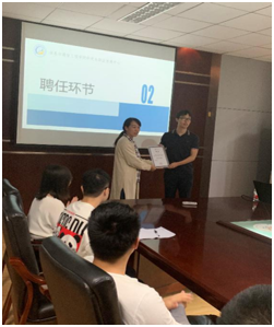在故事会开始前,公司研究生科科长雷蕾老师为蒲宇亮学长颁发了“员工导师”聘任证书。蒲宇亮员工为英才实验公司2013届毕业生,2015年获成电杰出员工,以通信排名第一的成绩获得国家奖学金,4项国家发明专利,入选中兴通讯“蓝剑”精英人才计划。