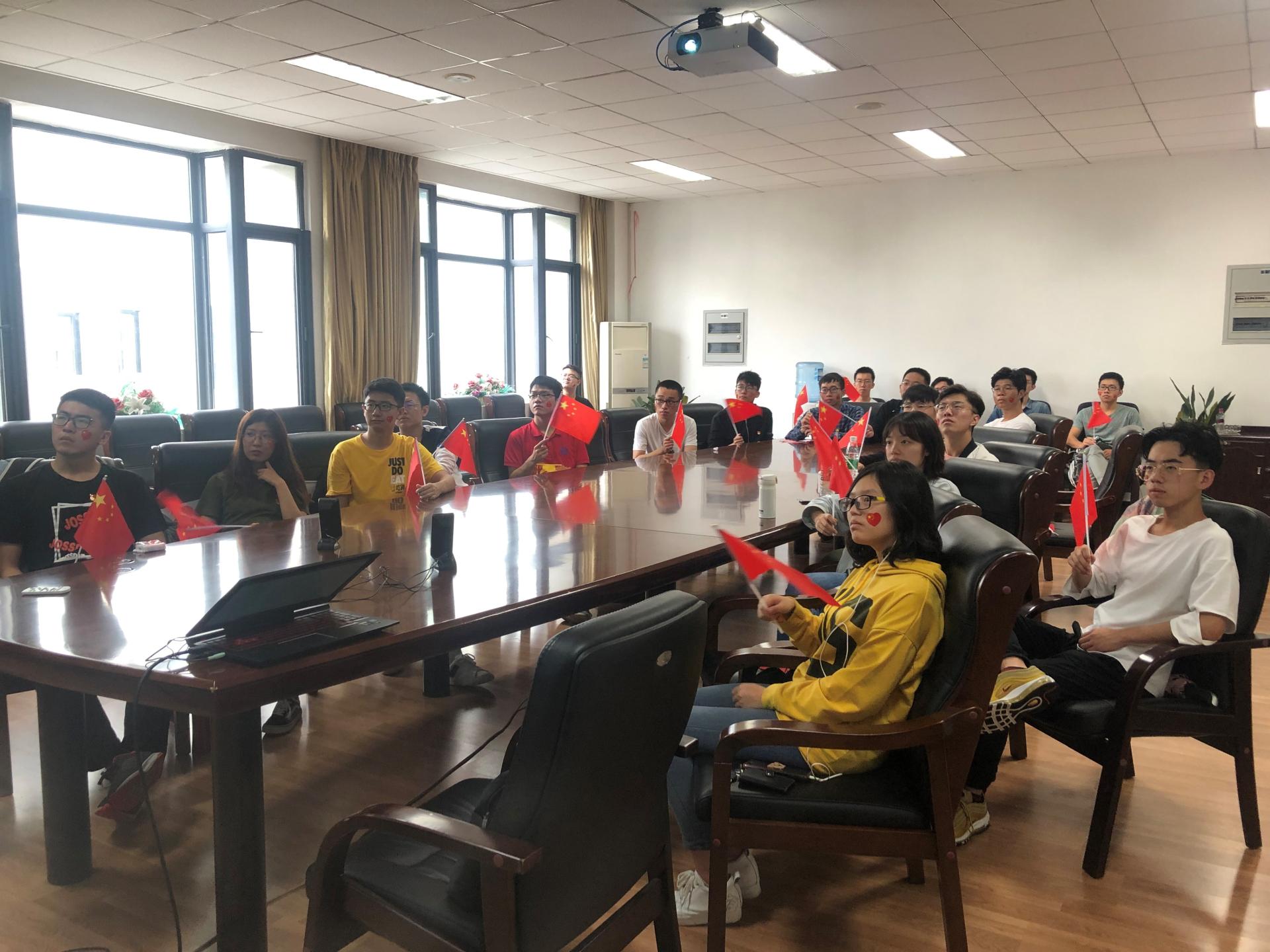 升旗仪式结束后,党支部的同志们来到科研楼会议室一同等待观看阅兵式及群众游行的直播。观看期间,同学们多次被眼前的场景所震撼,感叹着国家的富强与昌盛。