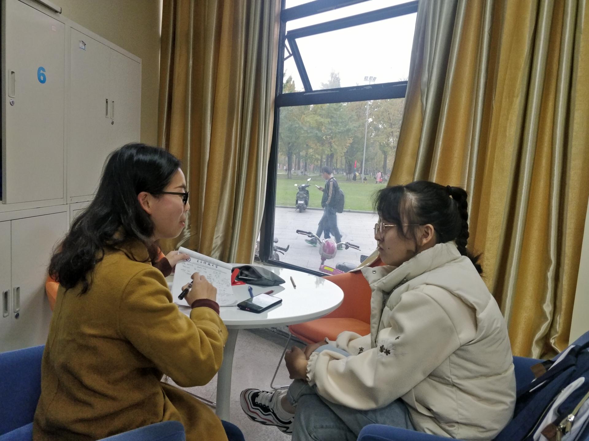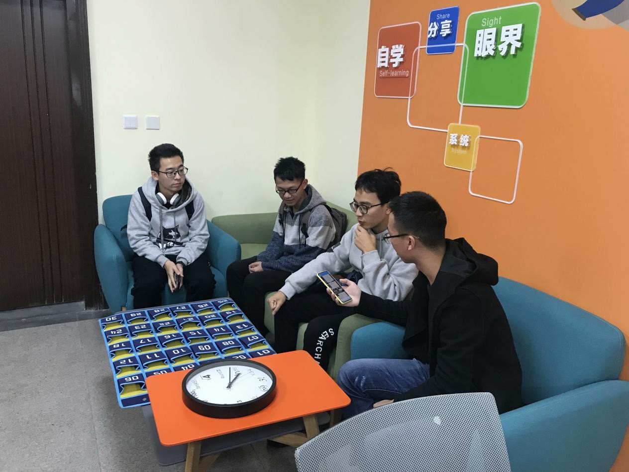 每天下午4点半,在科研楼C区114的员工发展指导中心里,交流讨论非常火热。同学们的谈论主题涵盖学习指导、生涯规划、能力提升三个方面,在温馨欢乐的氛围里畅所欲言。