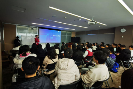 参观结束后,同学们来到了会议室,腾讯西部区域校园招聘经理刘洋帆老师接待了大家,刘老师就腾讯的发展以及求职就业中的相关问题与在场同学进入深入的交流探讨,不仅讲述了腾讯的产业结构,入职的福利,也介绍了校招的基本情况,从岗位要求,自我能力以及求职准备等方面给出了自己的建议,希望大家慎重选择岗位。