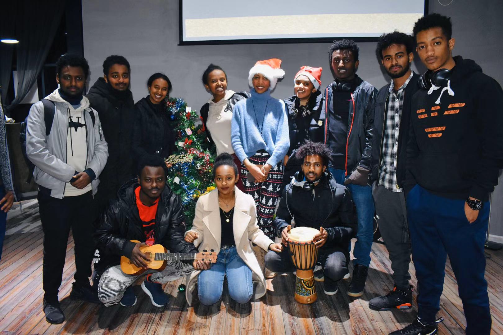 随后组织了本次晚会的最后一个游戏《Musical Chair》,总共有6个小组,大家积极参与,把晚会变成了欢声笑语的海洋,然后主持人Hainrick Talley唱了中国歌曲《对面的女孩看过来》,给在场的人带来了别样的感受,接下来迎来了晚会的高潮,职工Voix 和Crew敲起锣鼓,为大家带来加纳风情的歌曲演奏。