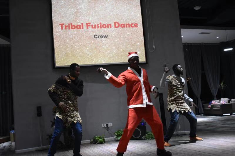 之后晚会进行到第二个游戏环节《You Act and I Guess》,员工分为5个小组,大家积极参与,情绪都很高涨,台下的人为台上的人们加油鼓劲,游戏环节大家竞争非常激烈,难分伯仲。之后本次晚会组织人员为大家带来了欢快的歌舞表演《我们一起学喵叫》,之后职工Chikwendu,Ijeoma和Amuche等七人为大家带来了合唱歌曲《Merry Christmas》,在场的所有人都被他们优美的歌声打动,歌曲唱完,在场想起了热烈的掌声。