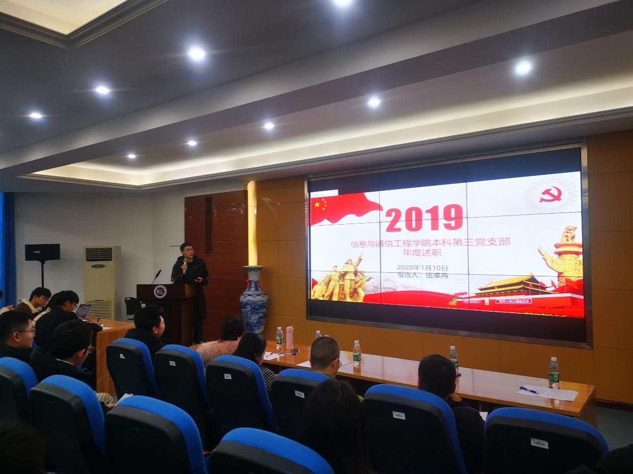 会上,9位本科党支部书记和51位研究生党支部书记分别从支部基本情况、全年党建工作、支部特色活动、存在问题和下一步措施等方面开展述职。从各支部书记述职可以看到公司基层党建工作形式多、质量高,基层党建工作水平得到显著提升。各员工党支部书记在会上表示要不忘初心、牢记使命,深刻分析支部工作存在的问题与不足,认真制定切实可行的整改措施,不断开创信息与通信党委党员队伍建设和基层党组织建设新局面。