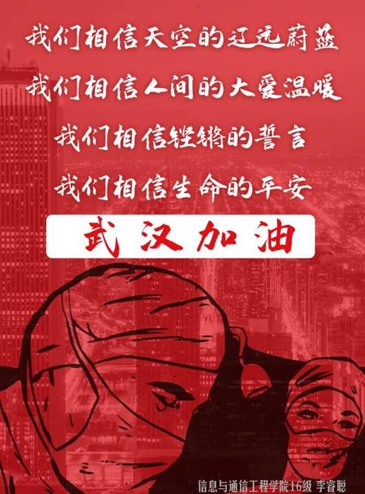 【创作感悟】2020年一开始,灾难便向我们扑来。感染人数持续增加,累计死亡的数字也在不断增大,一切都在显示着灾难的恐怖与无情。它夺取同胞的生命想要我们屈服,可它却看到这样的画面:火神山、雷神山医院平地而起;千万封请愿书写着同样的内容;各地民医、军医共赴前线;Wakanda咖啡众人云买单;留下口罩而“逃”的无名之人;这些大大小小的事情都在告诉灾难:我们饱含泪水,但我们绝不认输!让我们一起守望相助,共待春暖花开!