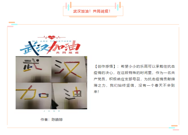 万物皆有裂痕,可是背后便是光。黑夜虽然漫长,可那之后便是阳。山河大地,芸芸众生,每一位挣扎在生死边缘的同胞,每一位奋战在一线的英雄,都牵动着我们的心。公司本科第四党支部的全体同学,积极响应号召,以自己的方式,向所有奋战的一线的“战士”们致敬!