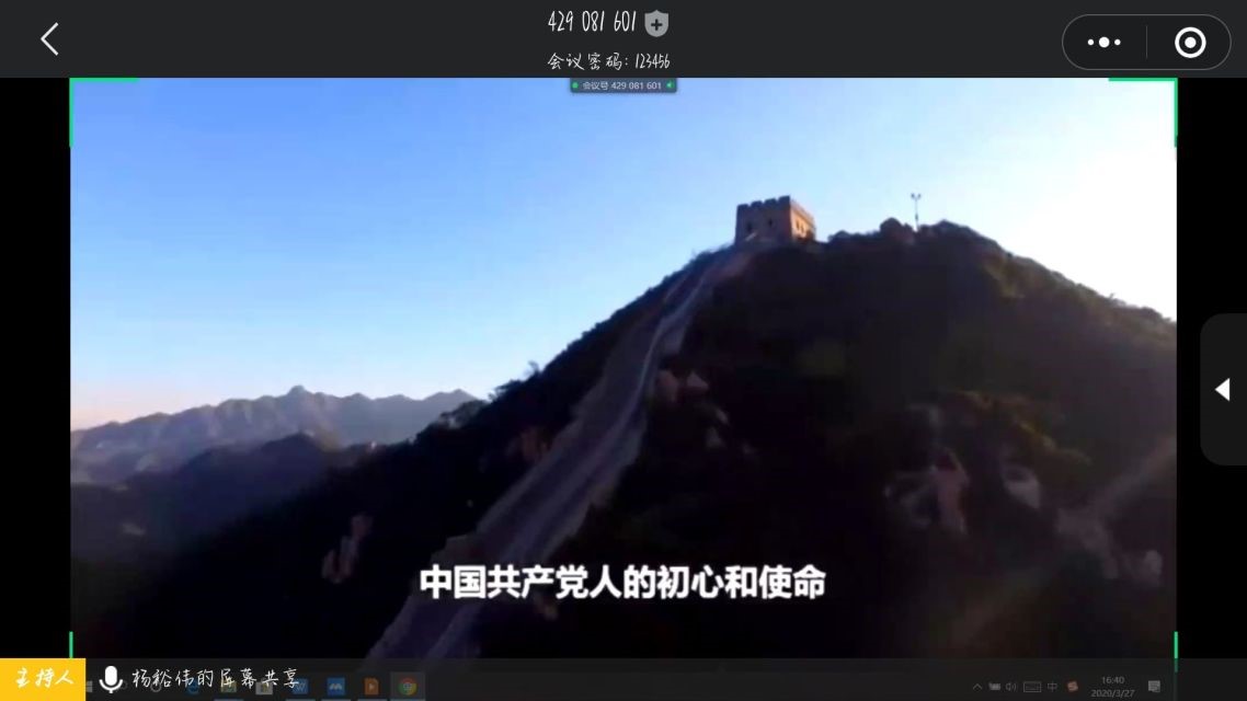 疫情发生以来,习近平总书记亲自指挥、亲自部署,全国各级党委和政府全力抗击疫情,目前我国在战疫中取得了很大的胜利。与会成员共同观看了《战疫武汉》,回顾发现新型冠状病毒、武汉封城以来的种种有力举措。