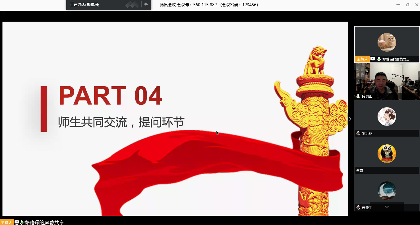 最后,在师生交流探讨环节,员工党员分别就开学安排、科研学习、毕业答辩、就业规划等方面提出自己的疑惑,教师党员冷甦鹏老师、段景山老师、邱昆老师、胡杰老师等对上述问题分别进行了详细耐心的解答。