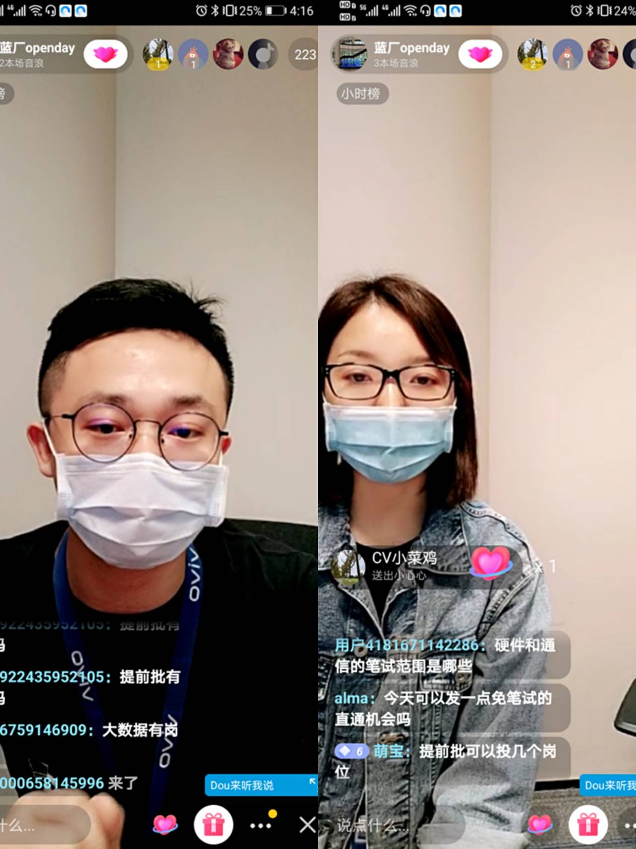 2020年4月23日,伟德国际victor1946成功开展“vivo线上Openday”活动。本次活动由公司研究生职业发展中心和院研究生会联合举办。由于疫情,活动采用抖音直播的方式开展,主要包括公司和提前批项目介绍、员工分享和线上参观三个环节。本次活动吸引了公司近240余名同学参加。Vivo公司校园招聘经理房岩老师和校企合作经理裴志娟老师。
