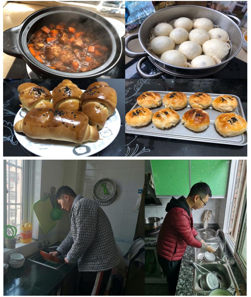 居家隔离期间,大家不仅严格遵守着防疫规定,也借此时机培养了新的兴趣爱好。博士生党员刘竹天身体力行,减少外出时间,每周只出门一次采购食物和必需品,与此同时,在家自己动手做饭、锤炼厨艺,并和亲友们举行线上聚会。因为疫情菜市场临时关闭,博士生党员徐帆云就到自家后院的菜地里采摘蔬菜,并且在家自学如何制作小蛋糕,用来作为每天的早餐。硕士生党员俞哲在疫情期间自学做点心,并且逐渐掌握技巧,渐入佳境。硕士生党员王朝栋则主动承担起家务劳动,减轻家人负担,用实际行动来回报家人,让他们也能抽出时间放松自己、享受生活。大家一致表示,培养居家小技能,不仅有利于自我情绪疏导,也丰富了个人生活;同时,在这个疫情肆虐的时刻,也更应该承担起作为儿女的义务,为家人分忧解难。