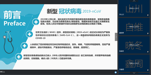 为了提高防疫知识,在“疫情防控”主题活动中,团队邀请了医公司唐乙厶同学,他们从专业角度讲解疫情防治知识,科普了新型冠状病毒的主要传播途径、传播特征与临床表现等。