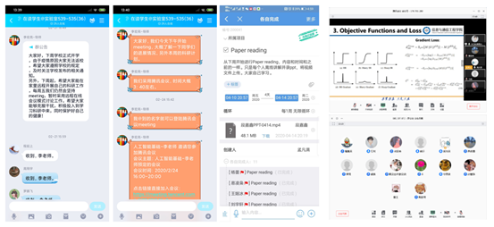 团队老师们每周都会通过社交软件在员工群里面召开会议,对每位同学最近一周的工作进行一对一指导,同时也通过日常的交流来关心成员在家里的生活情况。此外团队成员之间也会保持沟通,师兄师姐们也会帮助团队成员解决工作中遇到的难题。特别是在公司提出“听课不停学”的号召之后,老师们在当周召开视频会议,了解每个人的科研动态,并对每个成员下一阶段的工作做出指导。虽然由于疫情的影响研究生不能及时返校,但是大家科研的脚步一直没有停歇,每周也都会进行论文阅读会议,着眼于对最新的论文进行分享和分析。