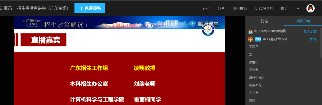 4月1日,公司本科招生办公室首次举办广东省2020年招生宣传网络直播,公司分管教学的副经理凌翔教授全程参与。凌翔教授从公司信息与通信工程等A+团队建设、新工科人才培养、行业发展等多方面给为广大考生和家长介绍了电子科技大学的情况,并鼓励考生们在特殊疫情下备考时保持良好的心态,提高自己的自律性,积极沟通,安心备考,“不忘初心,方得始终”。