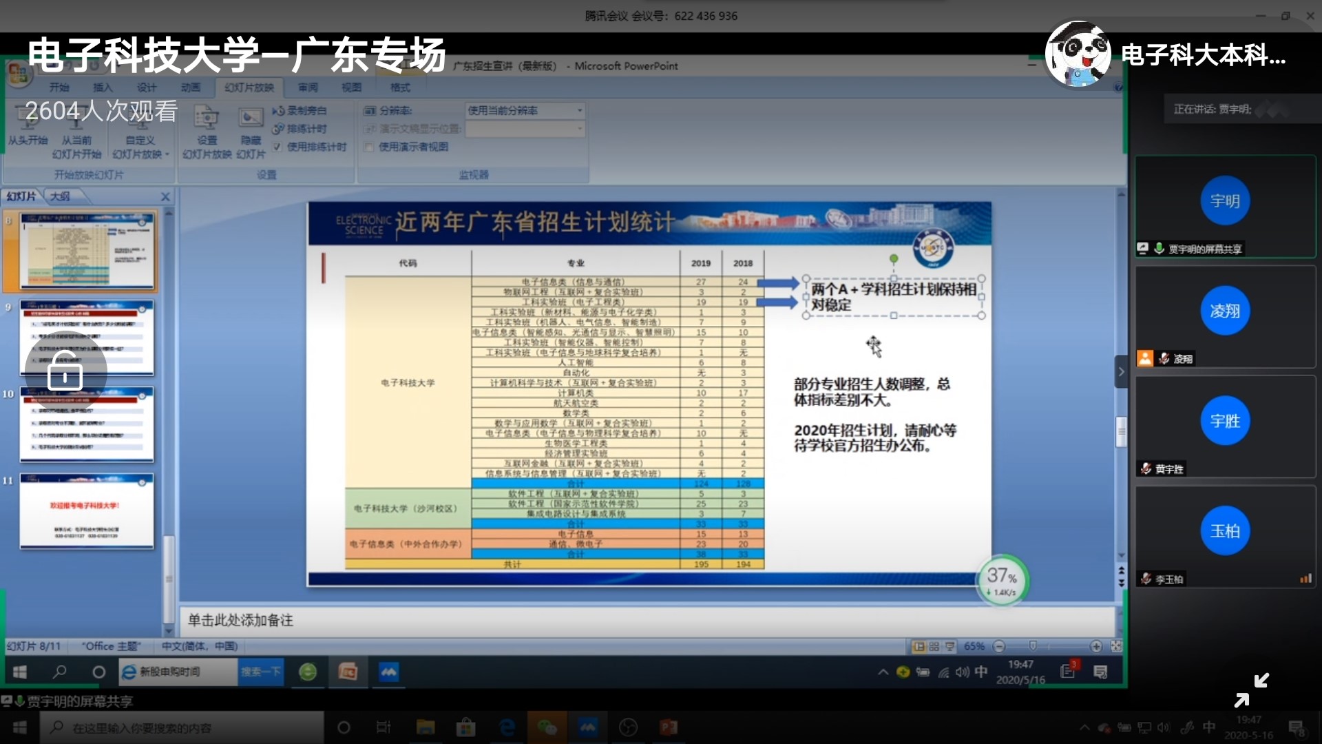 5月16日,公司依托今日头条平台开展面向广东地区考生和家长的专场招生宣讲会。本场招生宣讲会由公司党委书记李玉柏教授主持,李玉柏教授鼓励广大考生积极备考,沉着应考,欢迎大家积极报考电子科技大学;凌翔副经理为考生和家长详细介绍了电子科技大学的学科和专业特色;公司广东招生宣传工作组贾宇明教授分析了公司近年在广东本科招生的基本情况,并介绍了如何快速获得公司历年在广东省录取的专业分数线等情况;最后,公司优秀员工代表,来自广东省江门市的黄宇胜同学介绍了公司的优质教学资源和育人环境,鼓励学弟学妹们积极报考电子科技大学。