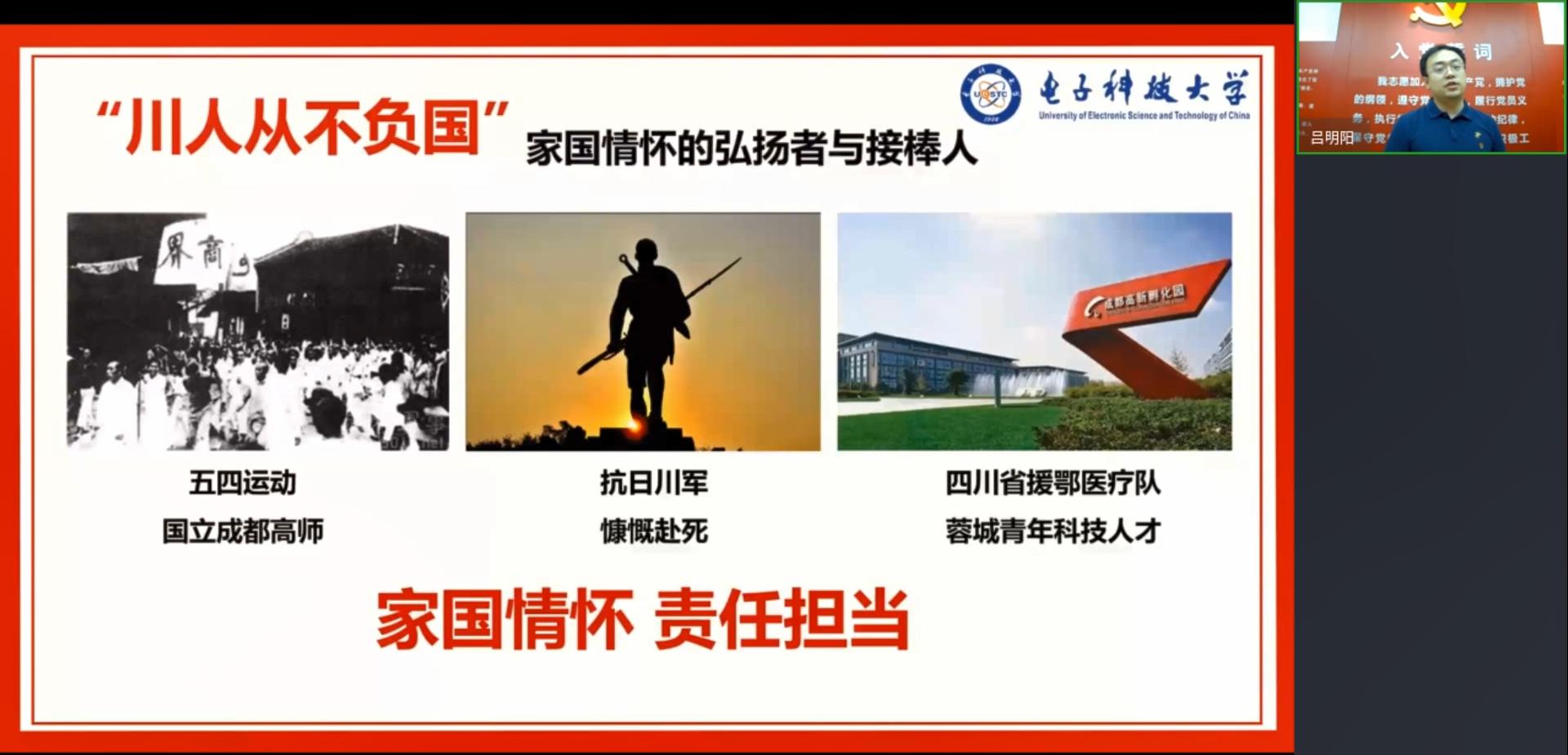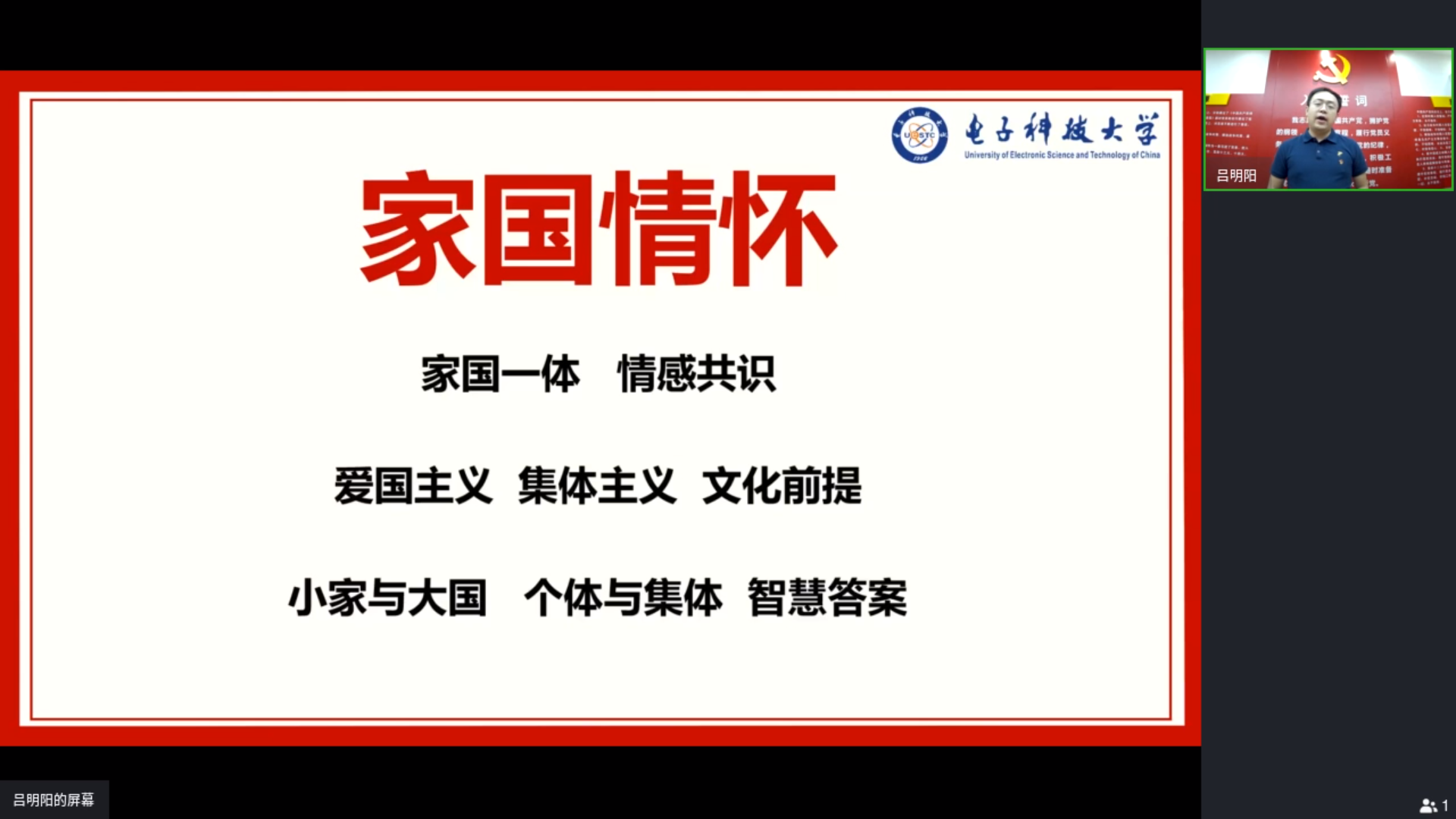 2020年7月7日,由电子科技大学马克思主义公司博士研究生吕明阳主讲的《战“疫”青春,蓉城青年的家国情》线上主题宣讲举行,本次宣讲面向伟德国际victor1946和马克思主义公司全体党支部和团支部,宣讲由公司党委副书记杨晓玲主持。