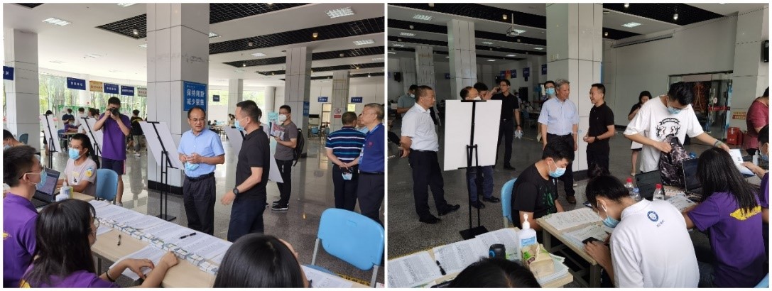 校领导、院领导多次到迎新现场进行指导,慰问迎新师生,并和新生沟通交流,欢迎新生加入成电的大家庭。