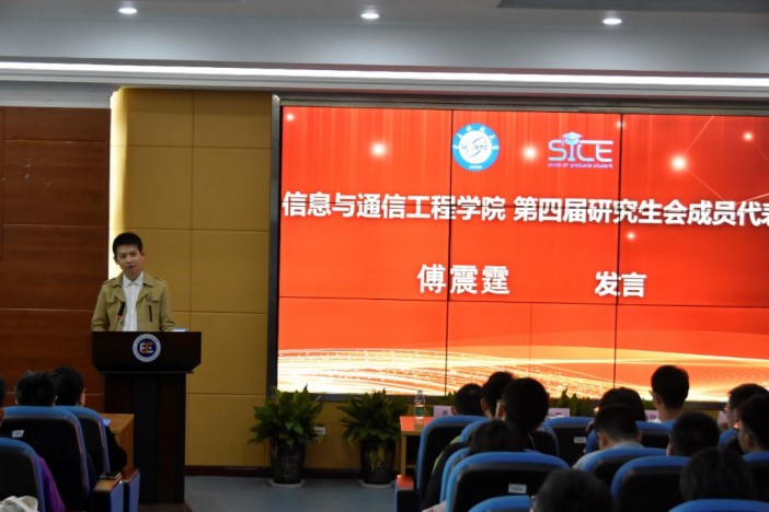 校研会主席胡琪振代表校研会对信通研会的成立表达了祝贺,在肯定上一届研会工作的同时对新一届研会提出了期望和建议。上一届信通研会主席曹昌杰,也表达了对新一届研会同学的问候和鼓励,对信通研会的未来做出了展望和祝福。