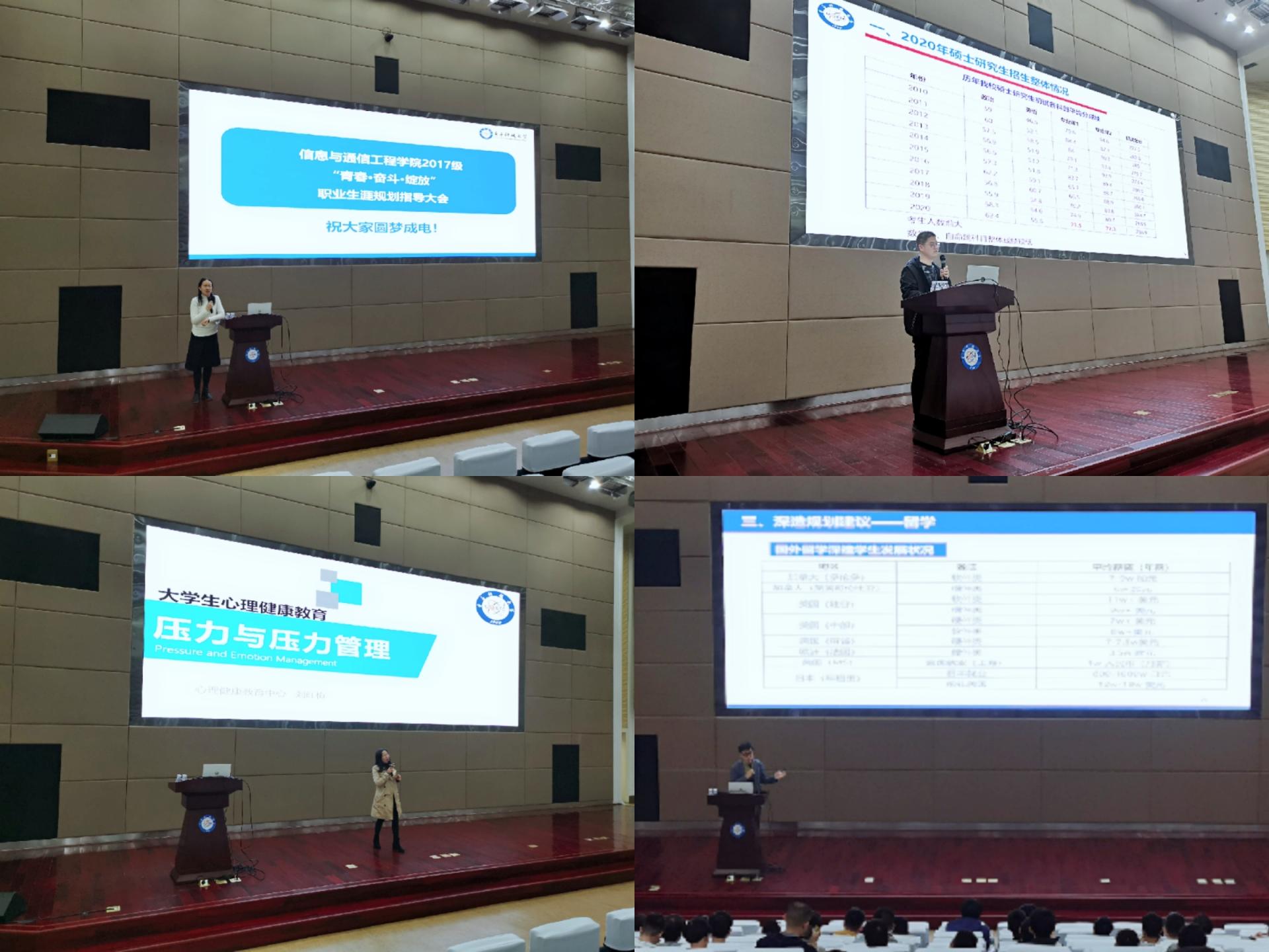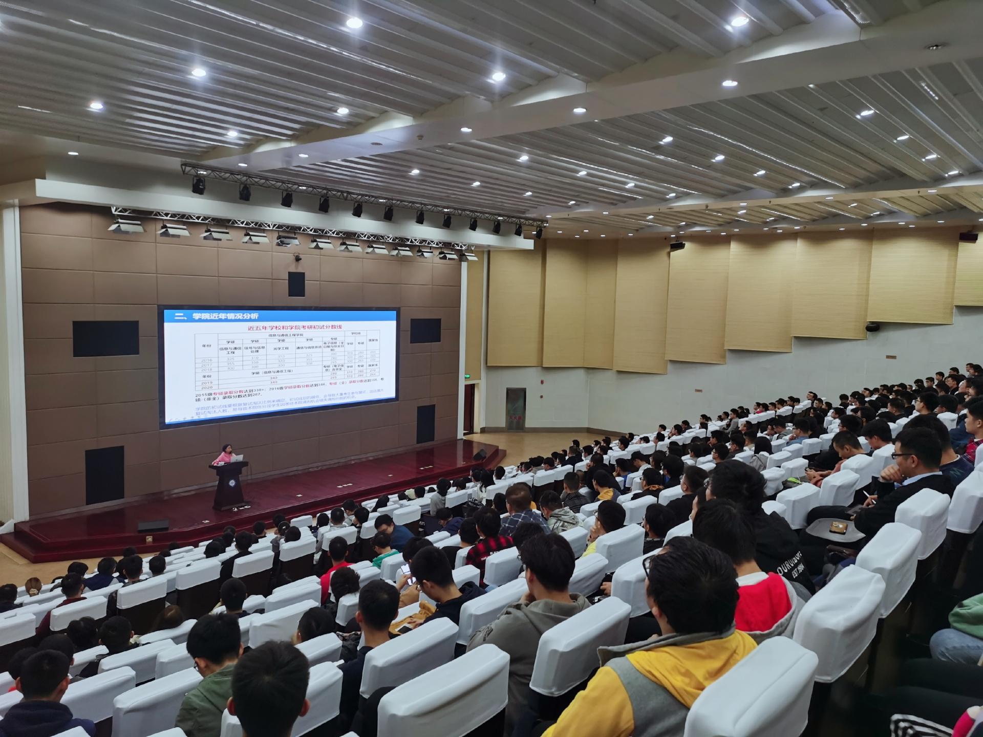 10月26日,伟德国际victor1946在图书馆求实厅召开了本科2017级“青春•奋斗•绽放”职业生涯规划指导大会。公司党委副书记杨晓玲、公司研招办闫永帅老师、心理中心刘红梅老师、年级辅导员和360余名考研同学参与了本次大会。大会分别就考研深造建议、招生政策解读和考研过程中心理调适等方面给同学们进行了详细指导。