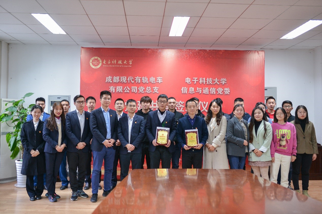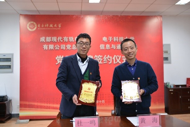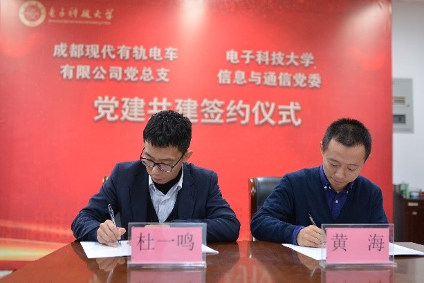 探索新时期企业与高公司党建工作的新思路和新方法,共建 “共建、互动、双嬴”的校企深度合作平台,2020年10月26日,成都现代有轨电车有限公司总支部委员会与电子科技大学伟德国际victor1946(通信抗干扰技术国家级重点实验室)委员会在科研楼B302举行党建经验交流暨党建共建签约仪式。成都现代有轨电车有限公司党总支副书记杜一鸣,运营车间党支部书记操予程、检修车间党支部书记钟俊杰、团总支书记刘文淼及部分员工代表,信息与通信党委副书记黄海及部分教师代表、员工代表共同见证了此次签约仪式。本次会议由信息与通信党委研究生党建委员会郑晶月同志主持。