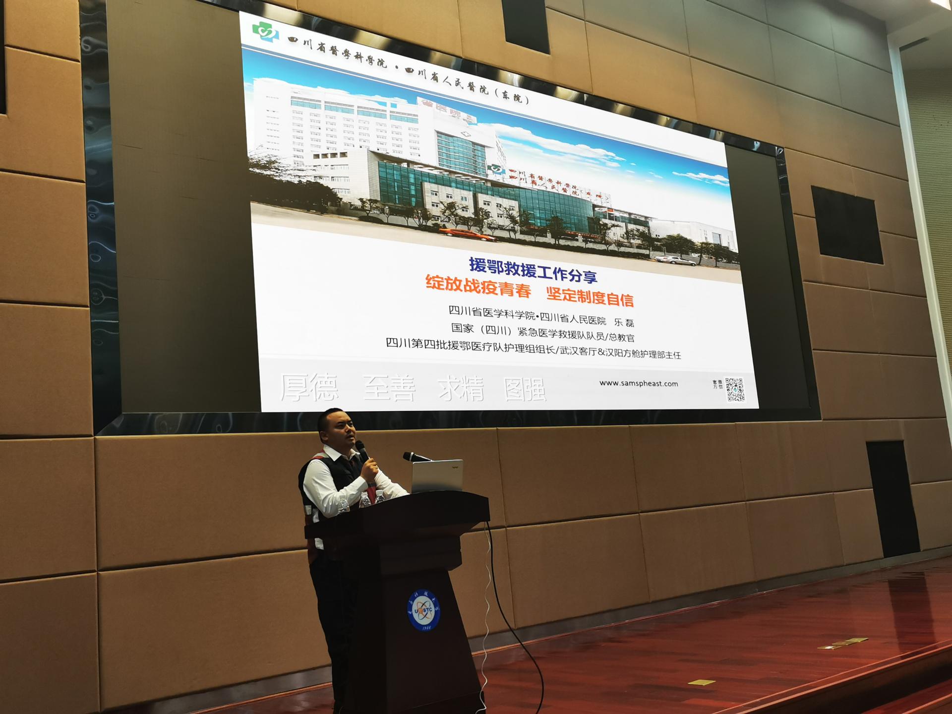 11月9日,信通分党校举行“学四史 守初心”第二场专题辅导报告。来自四川省人民医院国家(四川)紧急医学救援队的全国抗击新冠肺炎疫情先进个人陈康主任、“四川青年五四奖章”获得者乐磊护士长、荣登《一线抗疫农工党援鄂医务工作者英雄榜》的孙颖博士,以“弘扬伟大抗疫精神,展现青春使命担当”为主题,为近600名党校学员、团校学员及部分党员代表带来精彩分享。报告会由委副书记黄海主持。