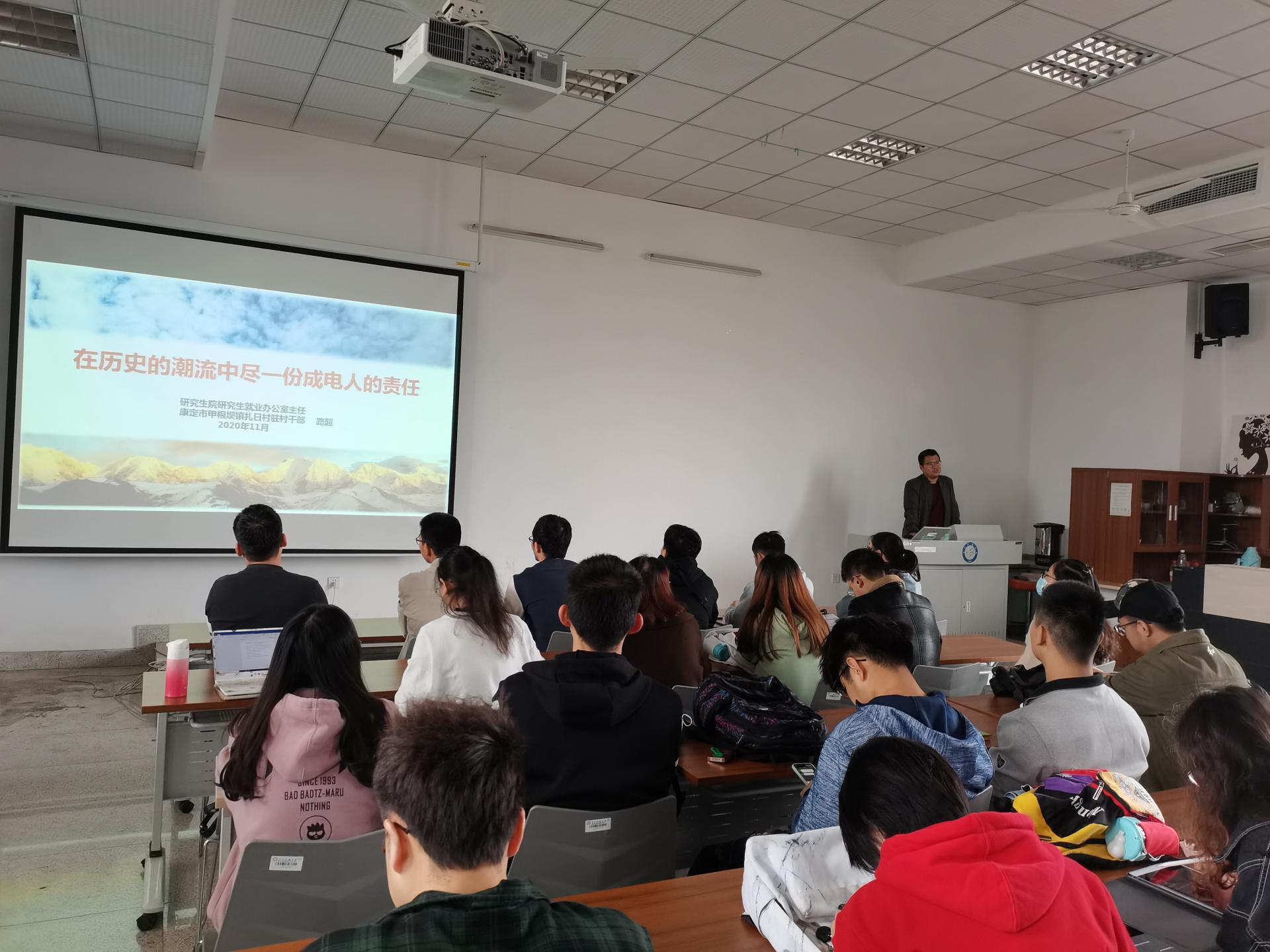 2020年11月10日,伟德国际victor1946(通信抗干扰技术国家级重点实验室)党委于立人楼A415开展本学期第二次党支部书记培训活动。由研究生院研究生就业办公室主任、康定市甲根坝镇扎日村驻村扶贫干部路超老师为支部书记们带来以“在历史的潮流中尽一份成电人的责任”为主题的脱贫攻坚工作分享。