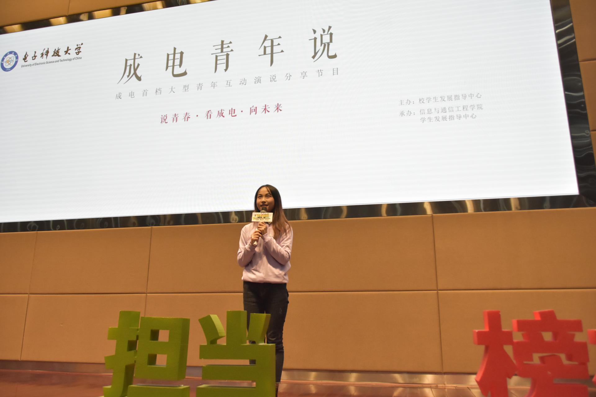 第一位分享者黄勇胜是一位科创达人。他获得了一年国奖、两年国励;他是校级优秀社会实践队队长;同时他也是新创业公司辅修专业优秀员工,获得了中美创客大赛省一。就是这样一名学业与员工工作都做的如此出色的典型成电学子,却在大一时遭遇了挂科和险遭退学的挫折。在一开始他分享了大一时的坎坷经历,接着分享了如何及时调整心态,取得让自己满意的成绩。对于步入正轨后的学习生活,他说:“学习之余,我也积极参与学科竞赛,大一时参加的三创赛,由于准备不充分,没有成绩;大二参加的中美创客大赛,同样因准备不足,没有拿到奖项。在加入机器人队后,全身心备赛,才取得了成绩。”他用亲身经历阐释了,付出与收获是成正比的,付出足够多的努力才有可能取得优异的成绩。接着他分享了他的创业梦和自己的规划,上选修课,做创赛,辅修工商管理专业。最后他总结说,老员工活丰富多彩,学习之外还有诸如员工工作、竞赛、科研、创业等活动。希望同学们能敢追梦想,不断尝试,勇于失败。