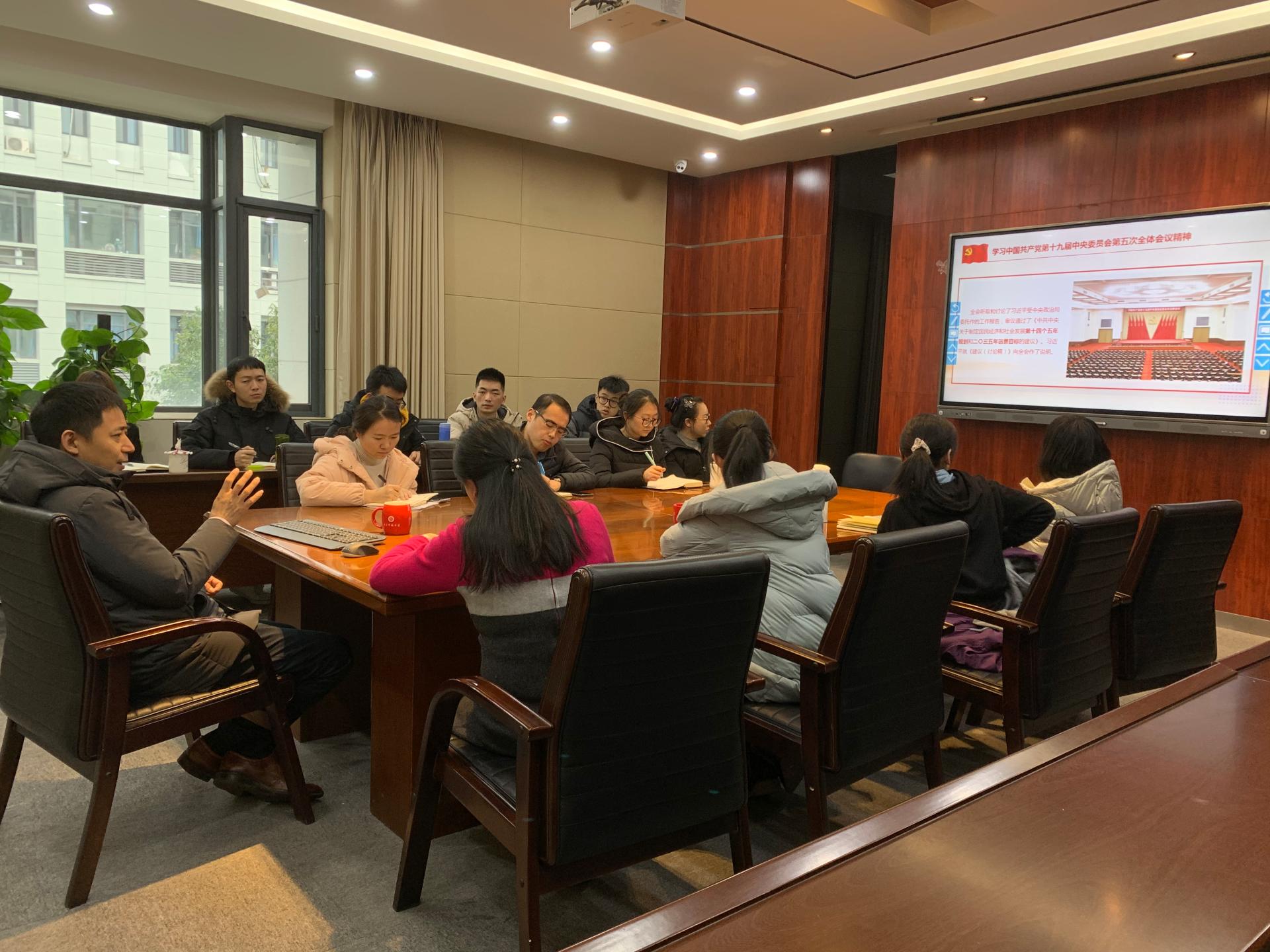 12月4日,伟德国际victor1946师生理论学习“每月一课”在科研楼B306举行。公司经理孔令讲以“学习中国共产党第十九届中央委员会第五次全体会议精神”为主题,结合公司实际与辅导员工作,带来了一堂生动且具有指导性的党课。公司党委副书记杨晓玲和全体本科生辅导员参加本次党课。
