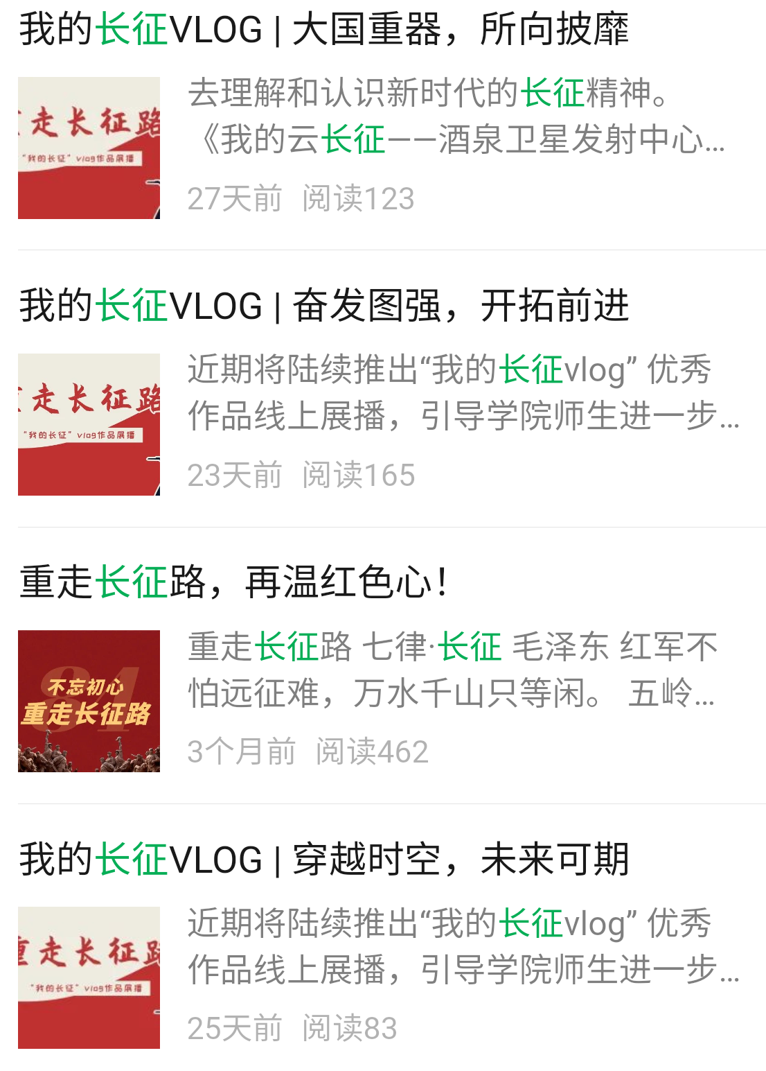为引导公司师生进一步坚定理想信念,传承红色基因,激发爱国力行。10月初,公司启动“四史教育——网上重走长征路”活动,陆续推出“我的长征VLOG”优秀作品线上展播。同学们用vlog记录自己回到家乡、出去看世界的足迹,通过vlog让更多人跟随视频拍摄者的脚步,去感受和体验不一样的“云长征”,去认识和理解我党在不同历史时期的关键时刻。