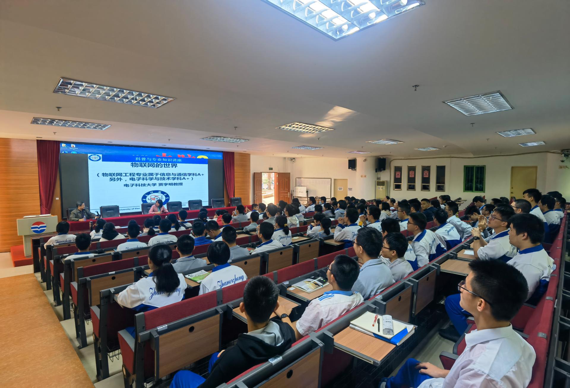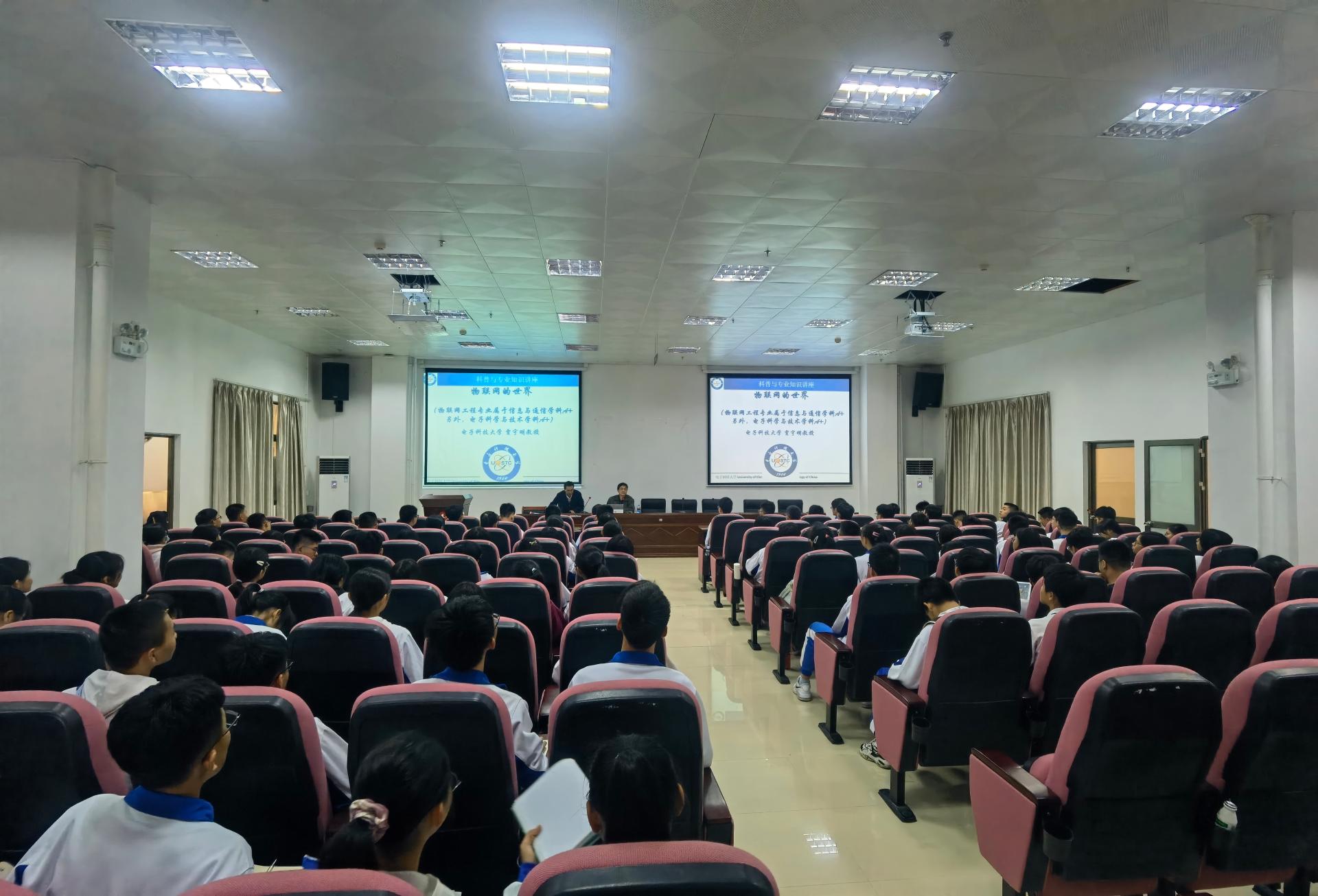 公司广东省招生工作组组长、科普讲座优秀主讲专家贾宇明教授分别在三所中学师生做了题为《物联网的世界》的科普讲座,贾教授深入浅出地分析了物联网发展历程及实际应用,并对未来发展进行了展望。在讲座中,贾宇明教授从国家层面的科技规划出发,指出物联网技术是新一代信息技术的重要内容,并从“什么是物联网”“物联网的特征”“物联网与其他信息技术的关系”“物联网的现实应用”等多个方面进行了细致讲解,并就当前我国物联网技术及相关应用的发展水平和趋势进行了简要概括,同时鼓励在座的同学们努力学习、培养兴趣,争取考入电子科技大学,为我国新一代信息技术的发展做出贡献。科普讲座后,招生工作组现场播放了公司的官方宣传视频,结合公司招生宣传PPT,从人才培养、专业设置和国际交流等方面对公司进行全面介绍,并就现场师生提出的问题进行了细致解答。