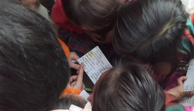 1月23日 志愿者们在美姑县瓦吉吉村,将收集的明信片分发给村里的孩子们,志愿者们耐心的带着孩子们读明信片,和孩子们分享明信片中的那些叮嘱和祝福,孩子们都很喜欢这些明信片。
