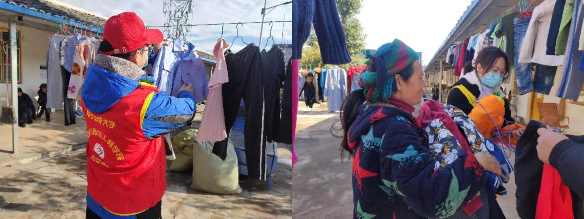 1月22日志愿者们在美姑县瓦吉吉村开展衣物发放活动,活动以“慈善超市”的形式开展。志愿者们会将衣物悬挂出来,让村民们依次进场挑选,根据自己家庭的人员情况选择合适的尺寸和款式,防止造成捐物的浪费。