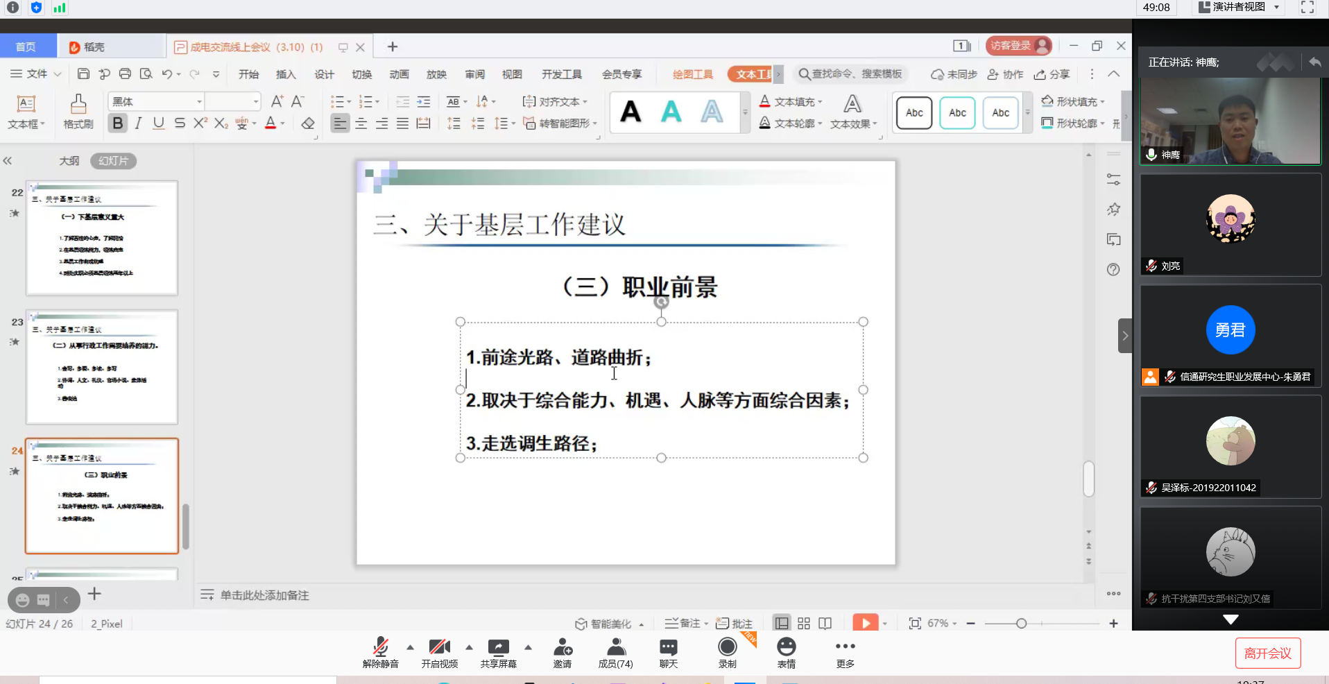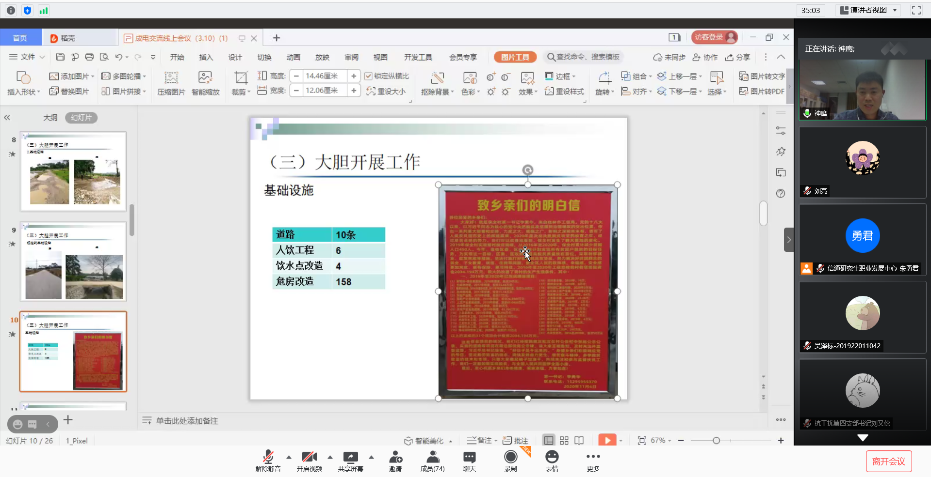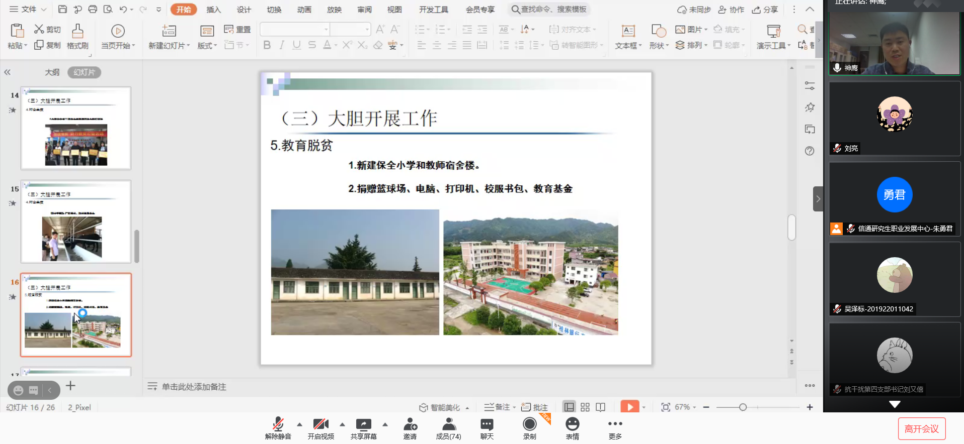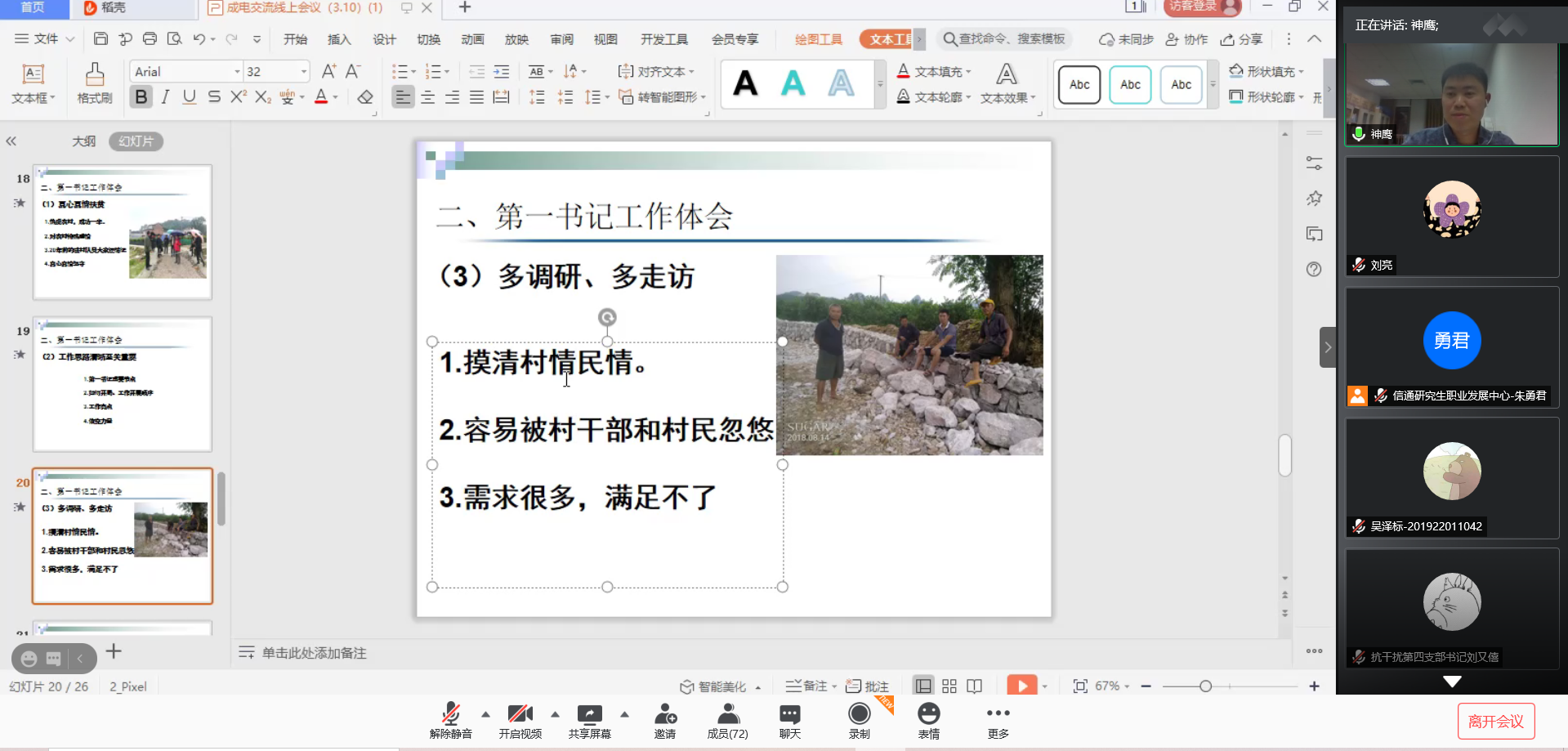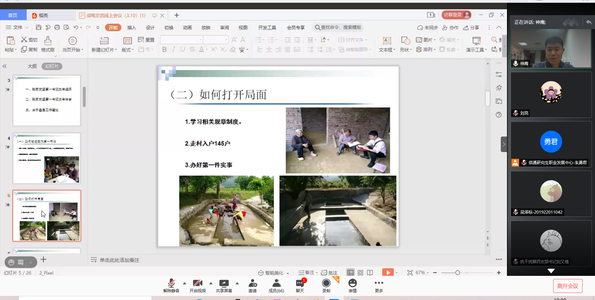 2021年3月11日晚,由伟德国际victor1946研究生职业发展中心举办的本学期第一场“员工故事会”活动在腾讯会议线上成功开展。为了让大家对基层工作有更深刻的认识,本次员工故事会我们有幸邀请到了桂林市临桂区两江镇保全村党组织第一书记李勇华师兄,为我们分享他担任第一书记的点点滴滴。李勇华师兄,在担任保全村第一书记期间,表现突出,获得了2018年度市委组织部捆绑考核桂林市第一书记排名第一,2019年“全区脱贫攻坚第一书记”等诸多荣誉。他的脱贫攻坚实绩先后被人民网、学习强国、广西日报等中区主流媒体宣传报道多次。