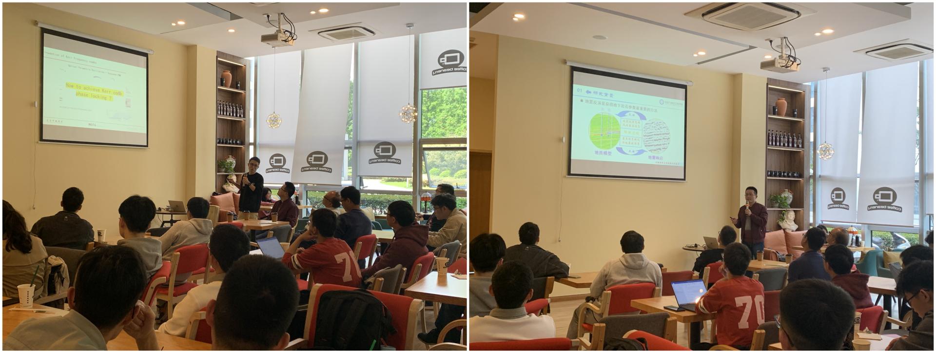 耿勇就芯片级微腔中的Kerr频率梳的基本原理和应用进行了解读,首先介绍了光频梳技术,光频梳技术在很多领域具有重要的作用,如天文探测、相干通信、光谱探测和神经网络等领域,光频梳就像是一把拥有精密刻度的尺或定时器,只不过一般的仪器以毫米、毫秒为单位,而光频梳在长度的测量上精确胜过纳米,时间则胜过飞秒、甚至达到阿秒;其次介绍了他们最近的工作芯片级微腔中的Kerr频率梳,包括如何实现Kerr频率梳的相位锁定等内容进行了叙述,最后就研究内容结合同学实际情况同样给出了大家一些宝贵的科研经验。