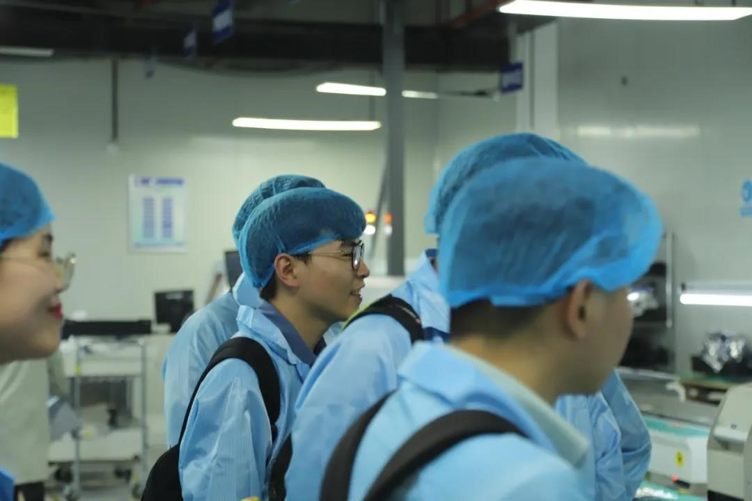 同学们还参观了智明达电子研发、生产的各个环节。智明达生产总监李汝强员工带领同学们参观了公司的生产测试基地,同学们了解了产品从研发到测试再到生产实现的全流程,深刻理解了作为研发人员将技术转化为产品需要理论结合实际的重要性。