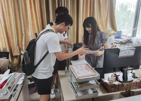 首先同学们走进了公司辅导员办公室,给可爱的辅导员老师们送上了三十一位壹系壹班同学用心书写的“三行书信”文创贺卡。为人师表,润物无声。感谢老师们在过去的一年里不仅细心关注着同学们的学习、生活,更是教会同学们为人处世的道理,照亮了前行的方向。