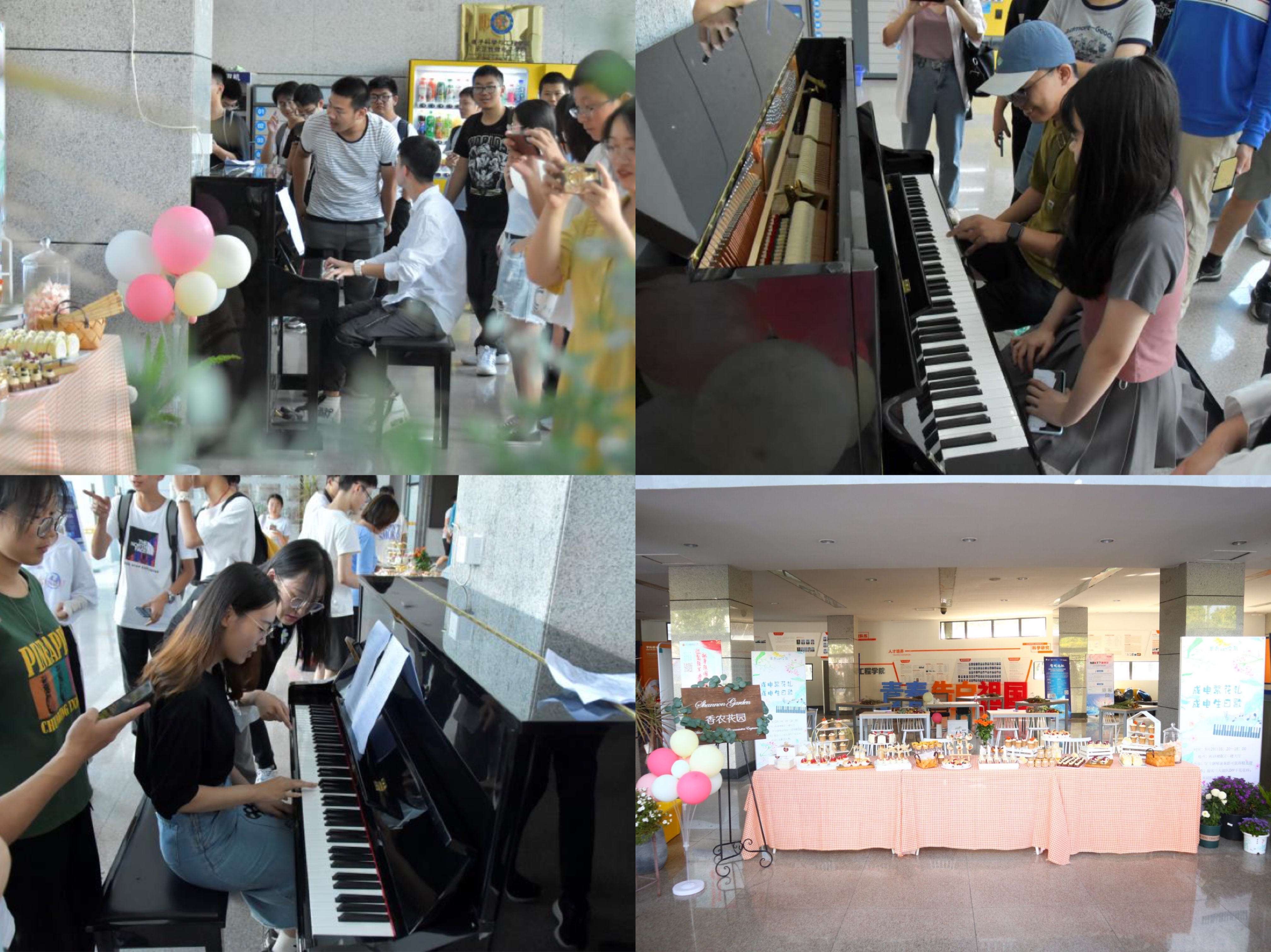 以赞歌相颂,庆成电诞辰。年华似锦,芳华如歌。同学们在指导下学习弹奏成电校歌《年华似锦》与《生日快乐歌》,琴声悠扬,黑白琴键上跳跃的音符承载着对公司诚挚爱意;甜点精致,空气中弥漫着的甜蜜引起成电学子的校园记忆。