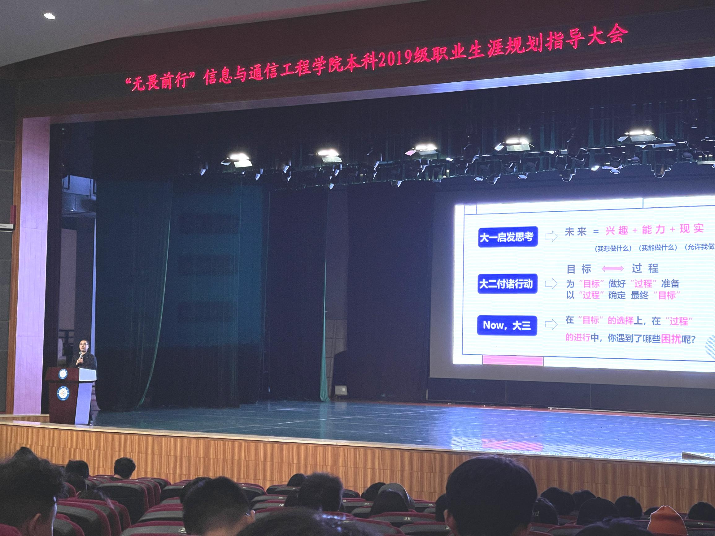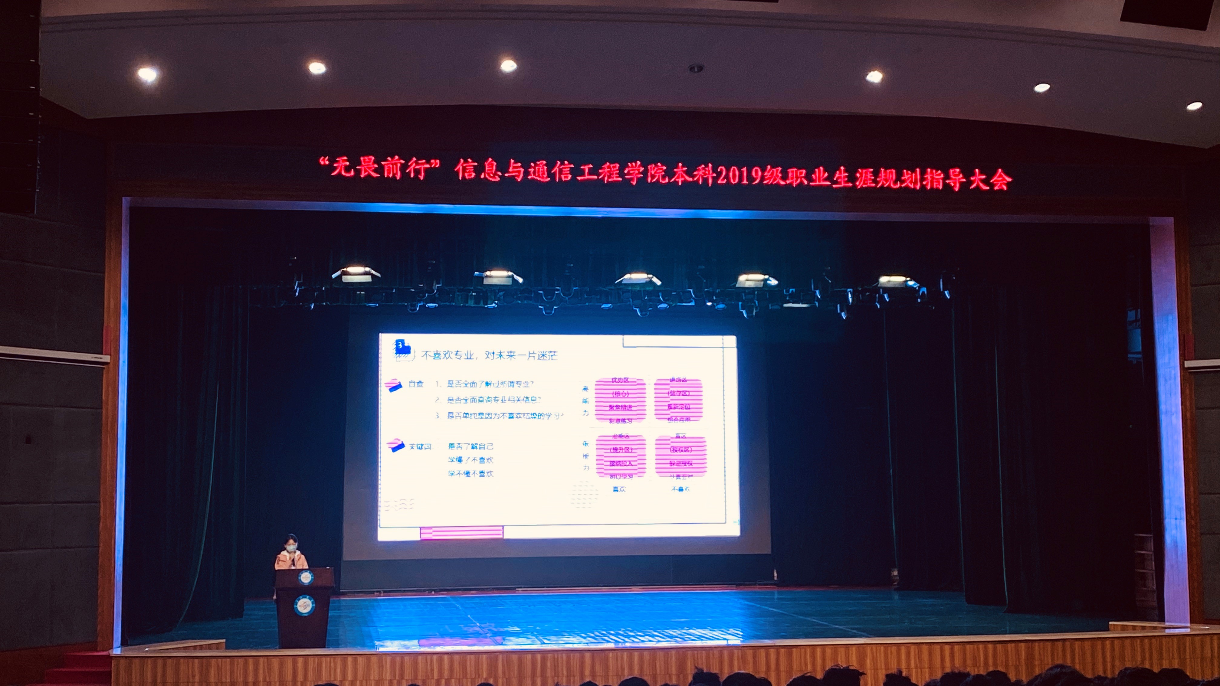 11月1日,伟德国际victor1946在成电会堂举行本科2019级生涯规划指导大会。本次大会以“无畏前行”为主题,对同学们在目标选择和过程进行中遇到的困扰进行分析解答,帮助员工明确自身目标,做出合理规划。公司党委副书记杨晓玲,本科2019级辅导员夏鋆、徐展、段志秀及全级700余名员工参加大会。