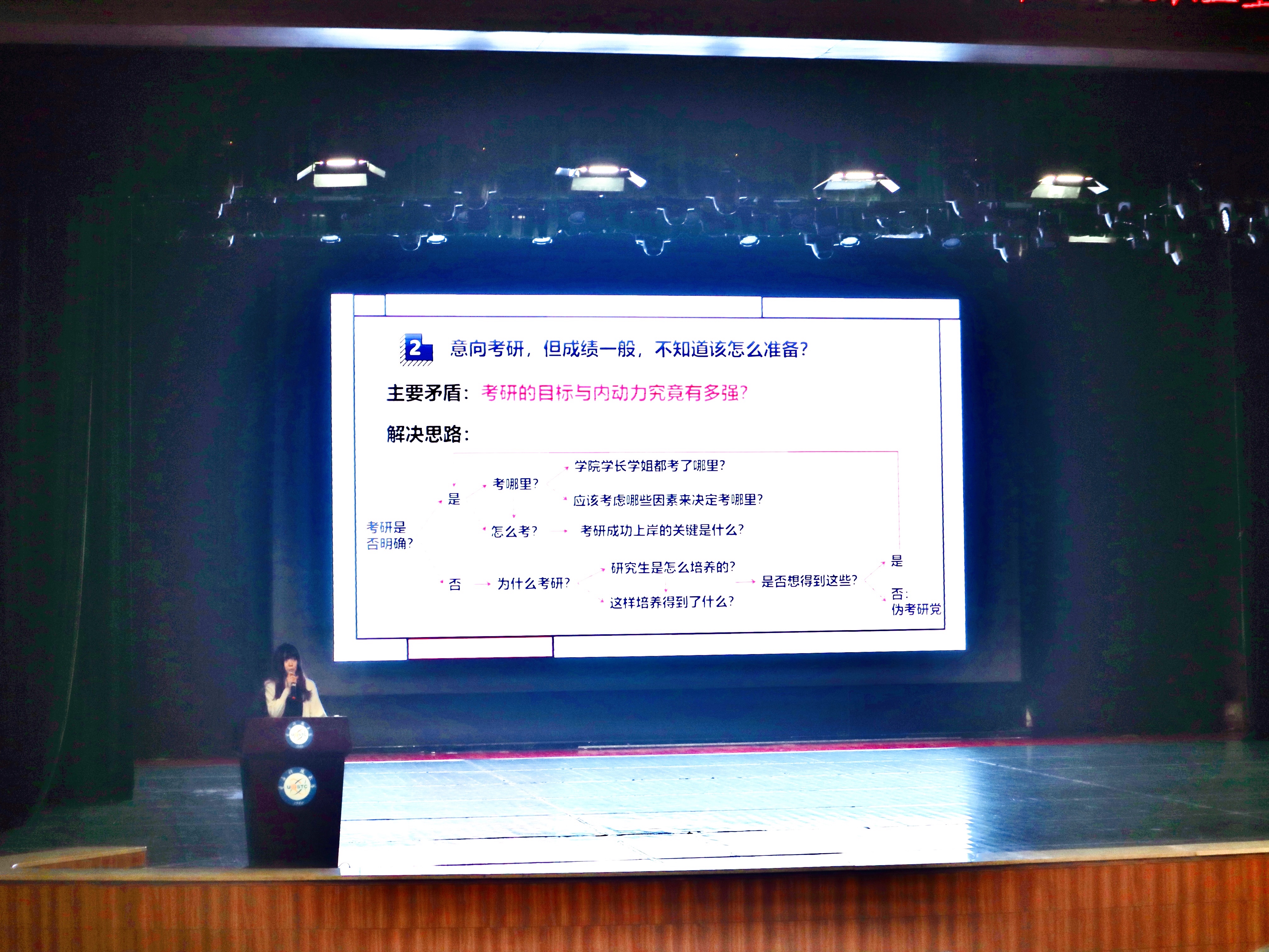 接下来,针对生活上的困扰,徐展强调了老员工涯中人际交往的重要性,介绍了与人相处的方式和技巧;段志秀从分门别类、心理准备和思维转换三个方面分析了如何减轻焦虑,积极前进;夏鋆用自身经历告诉同学们要从思想与行为层面努力,提高自己的意志力和执行力。